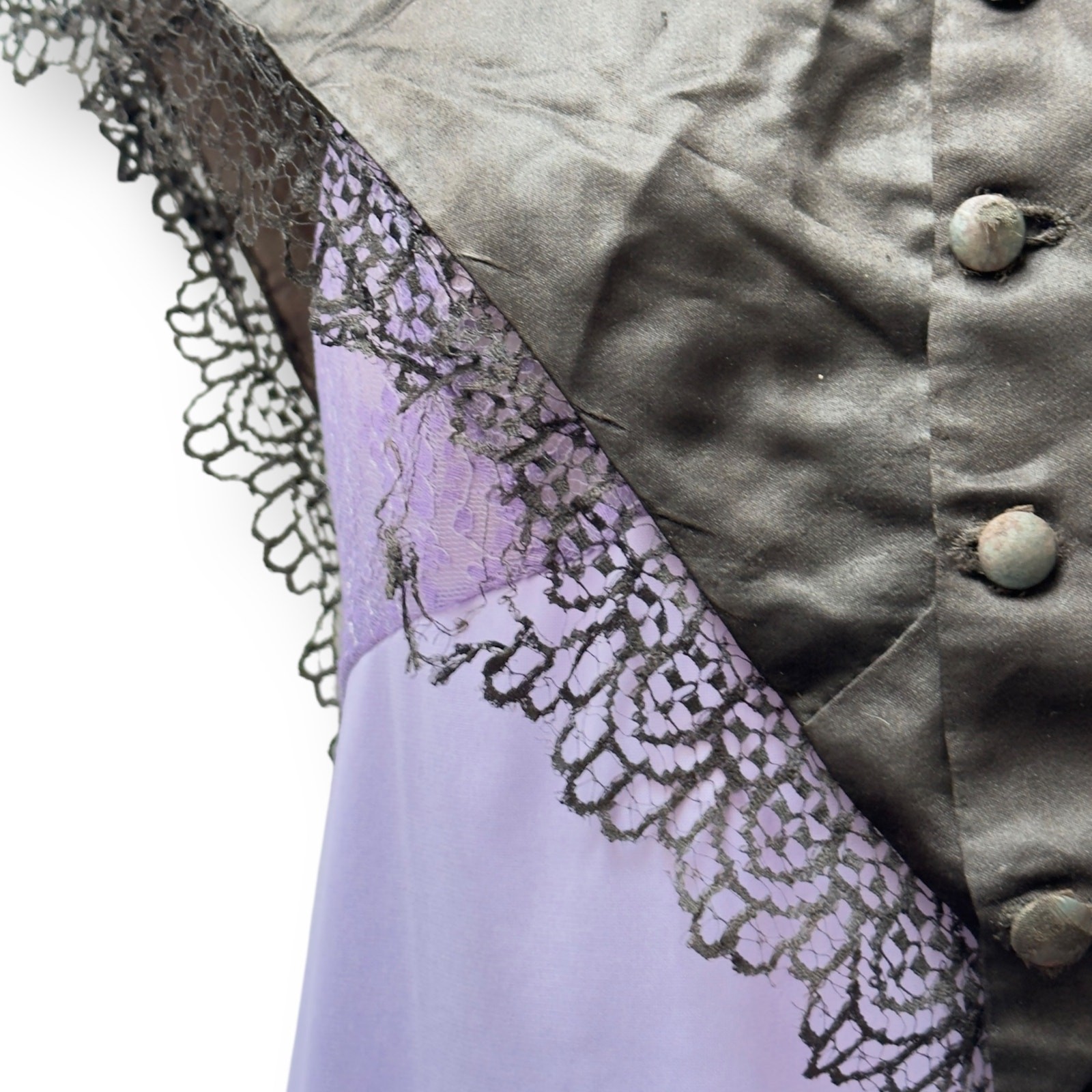 Antique Victorian Mantle Bib Collar Blouse 1880s 1890s Silk Mourning Lace Trim