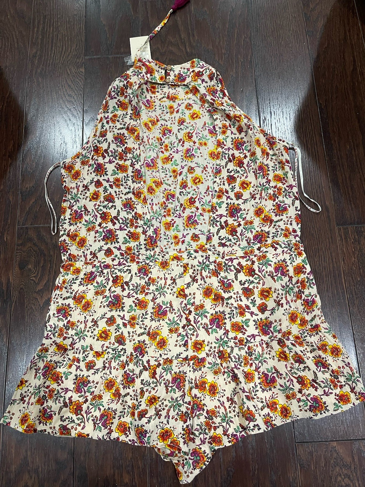 как выглядит RAGA Anthropologie Myrna Floral Open Back Romper Women Small Sleeveless Boho NEW фото