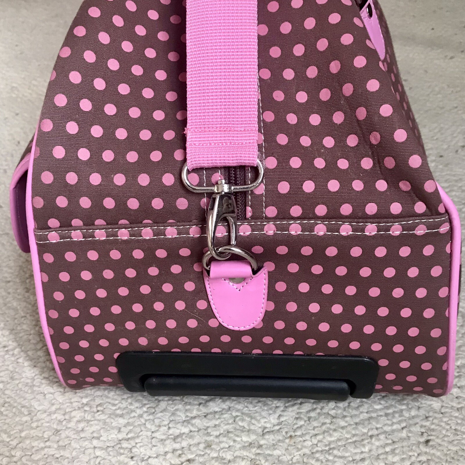 как выглядит CGull CRICUT Large Rolling Travel Storage Tote / Bag Brown w/Pink Polka Dots фото