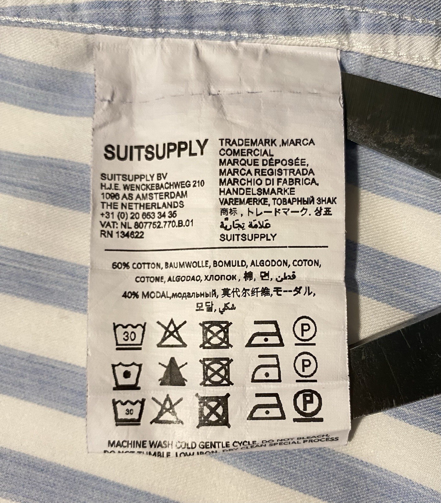 как выглядит Suitsupply Striped White Blue Long Sleeve Men s Dress Shirt Size 16L 41-7 фото