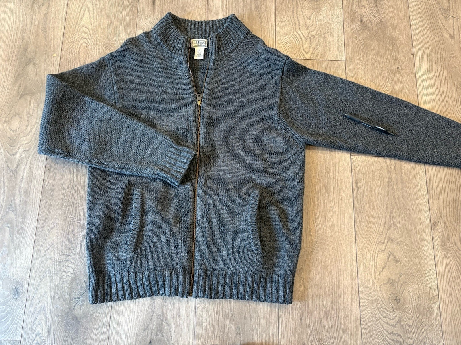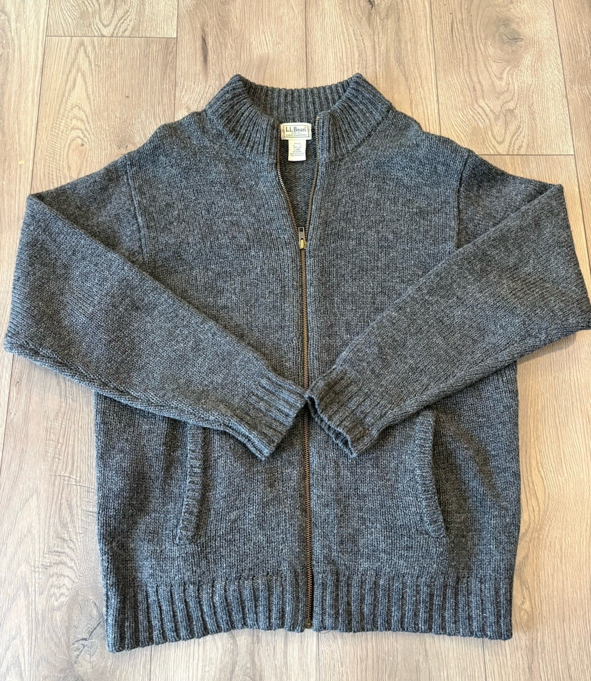 LL Bean Full Zip Cardigan Sweater Mens L Gray 100 Shetland Wool Soft Comfy