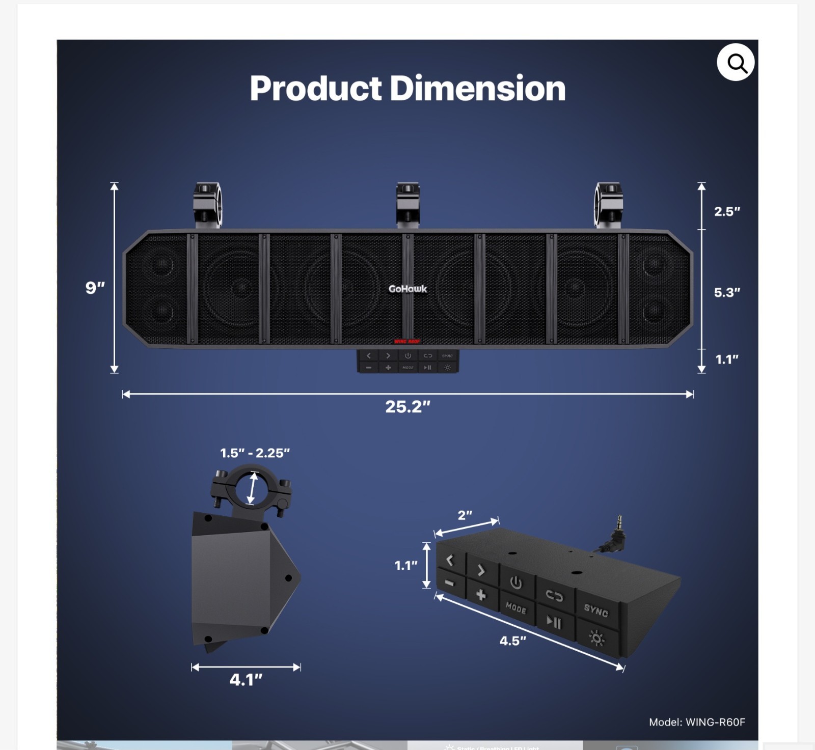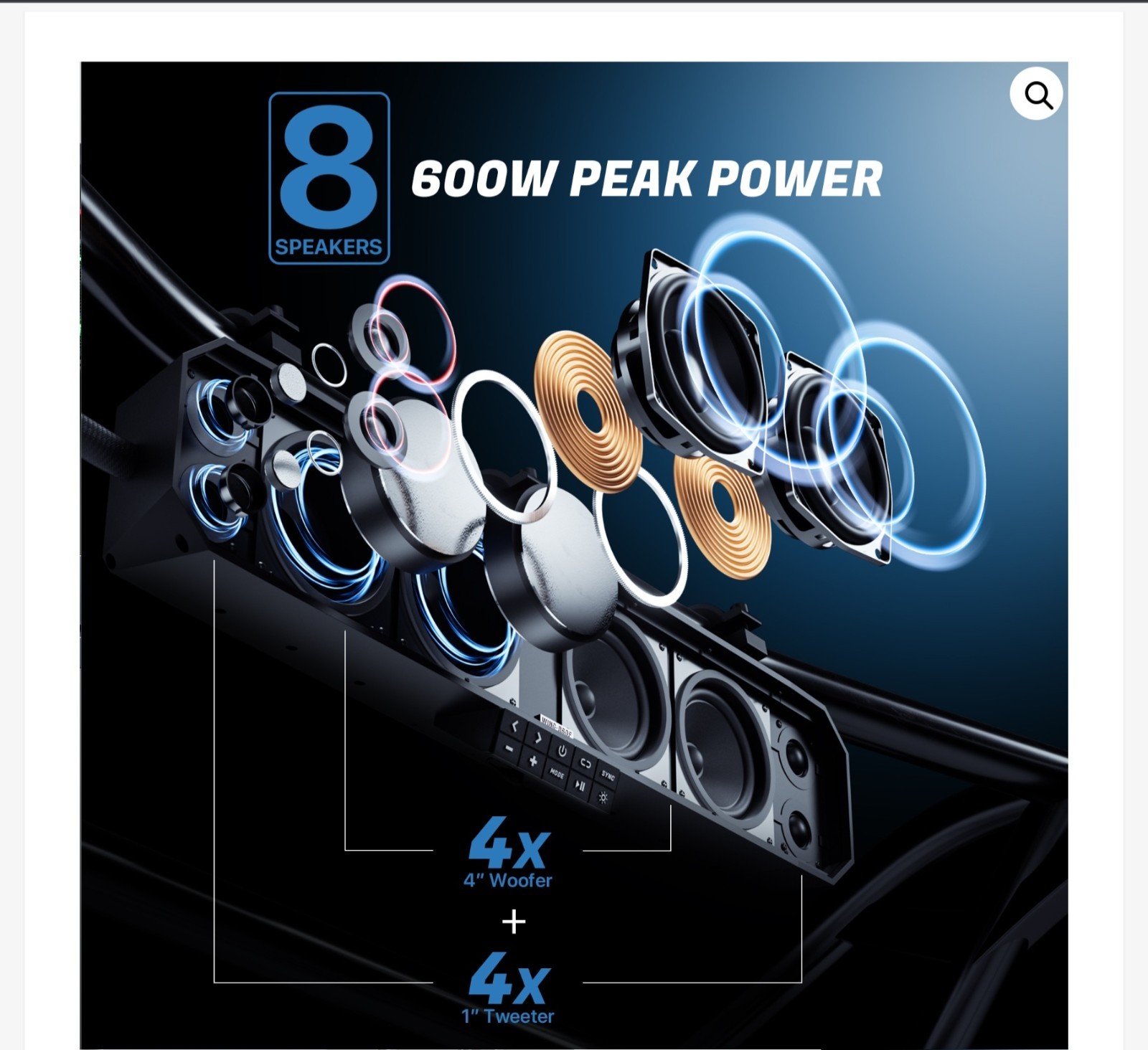 как выглядит 8 Speakers Bluetooth Polaris UTV RZR Waterproof LED 600W Sound bar Audio System фото