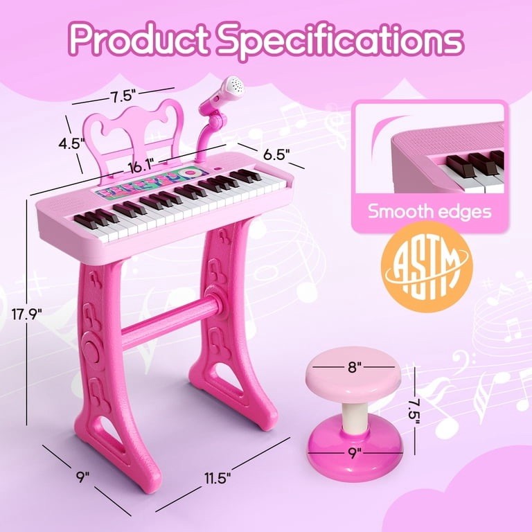 37 Key Electronic Keyboard Kids Toy Piano MP3 Input w/ Microphone Stool Musical