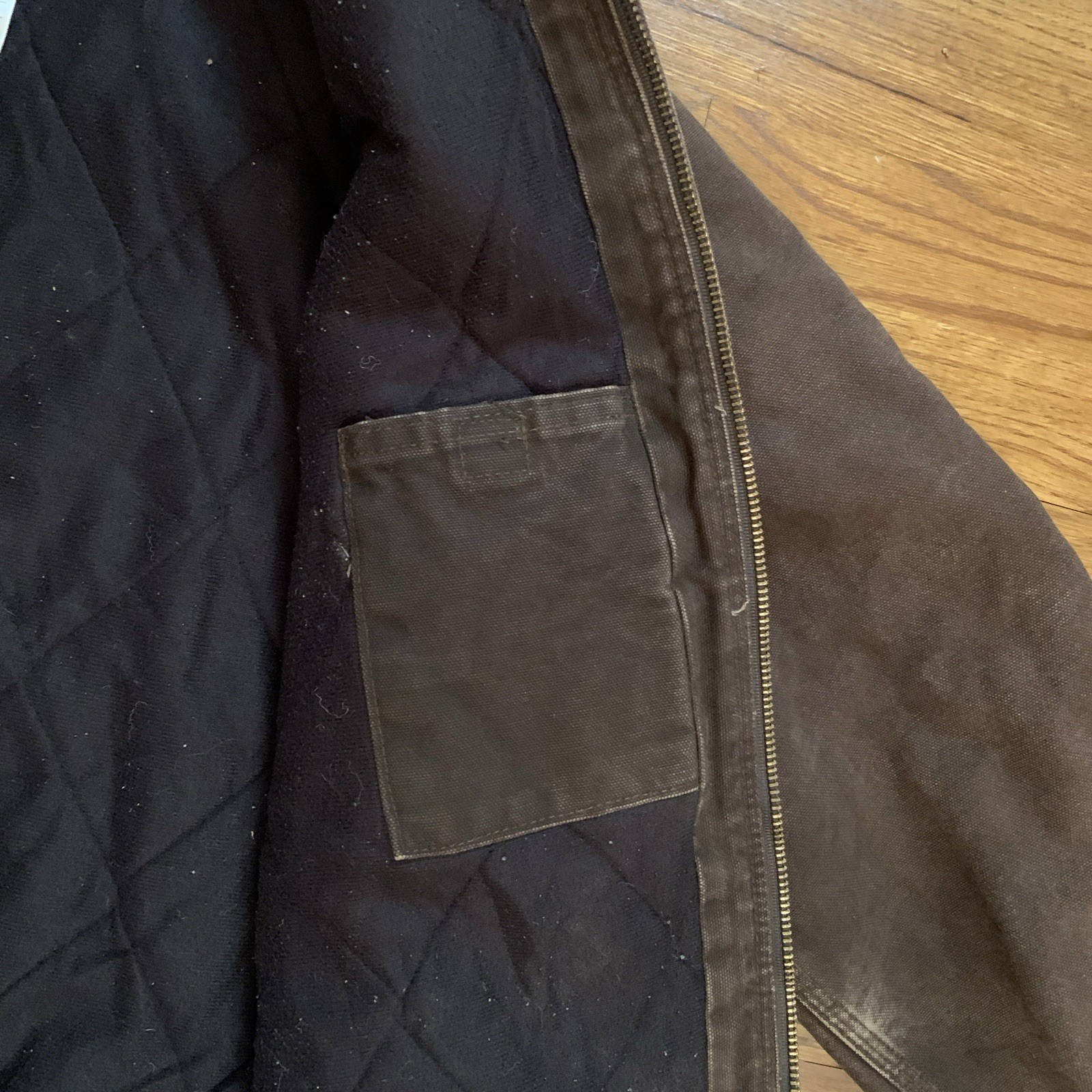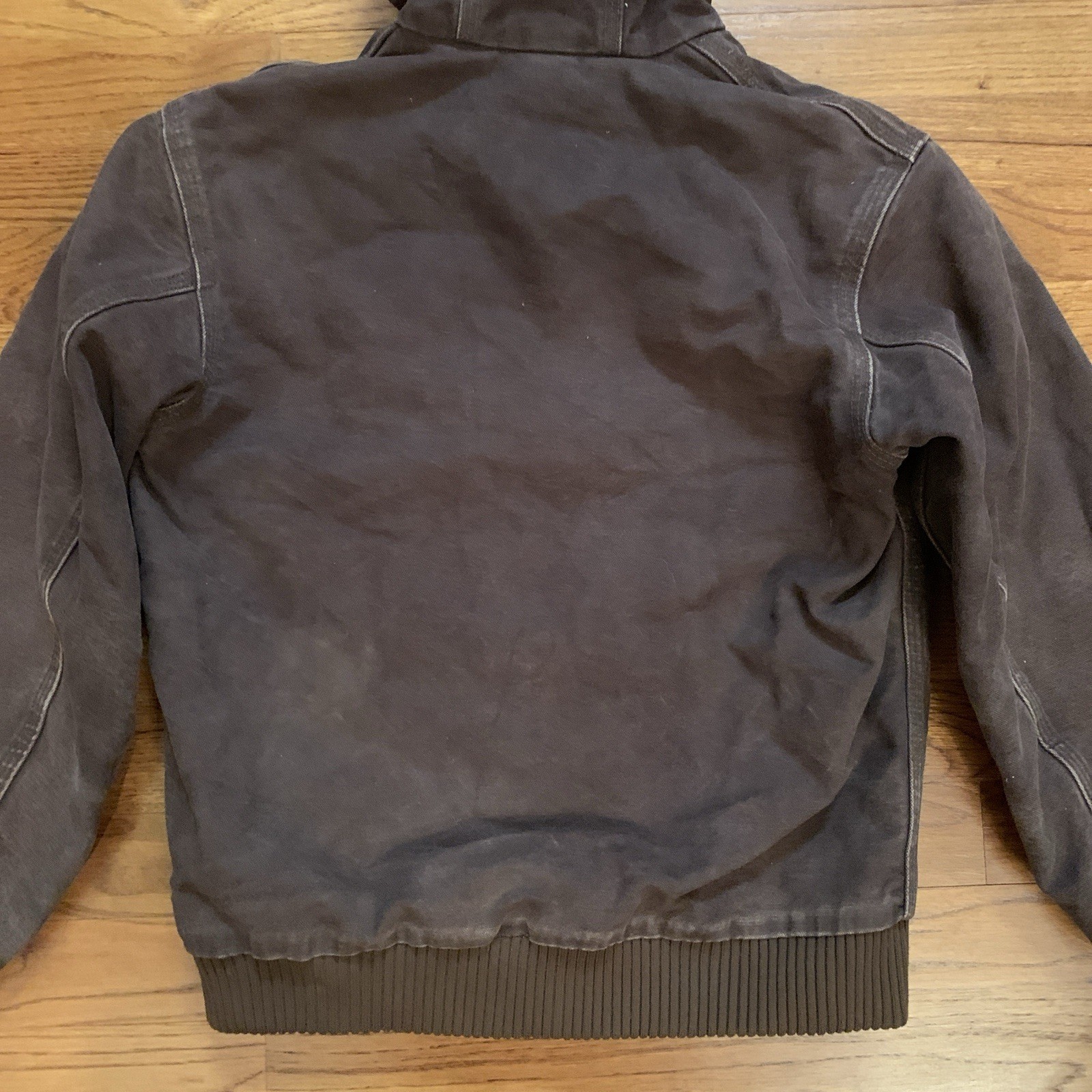 как выглядит Carhartt Youth Jacket Hooded Coat Lined Outdoors J130 Dark Brown Kids Sz L 10/12 фото