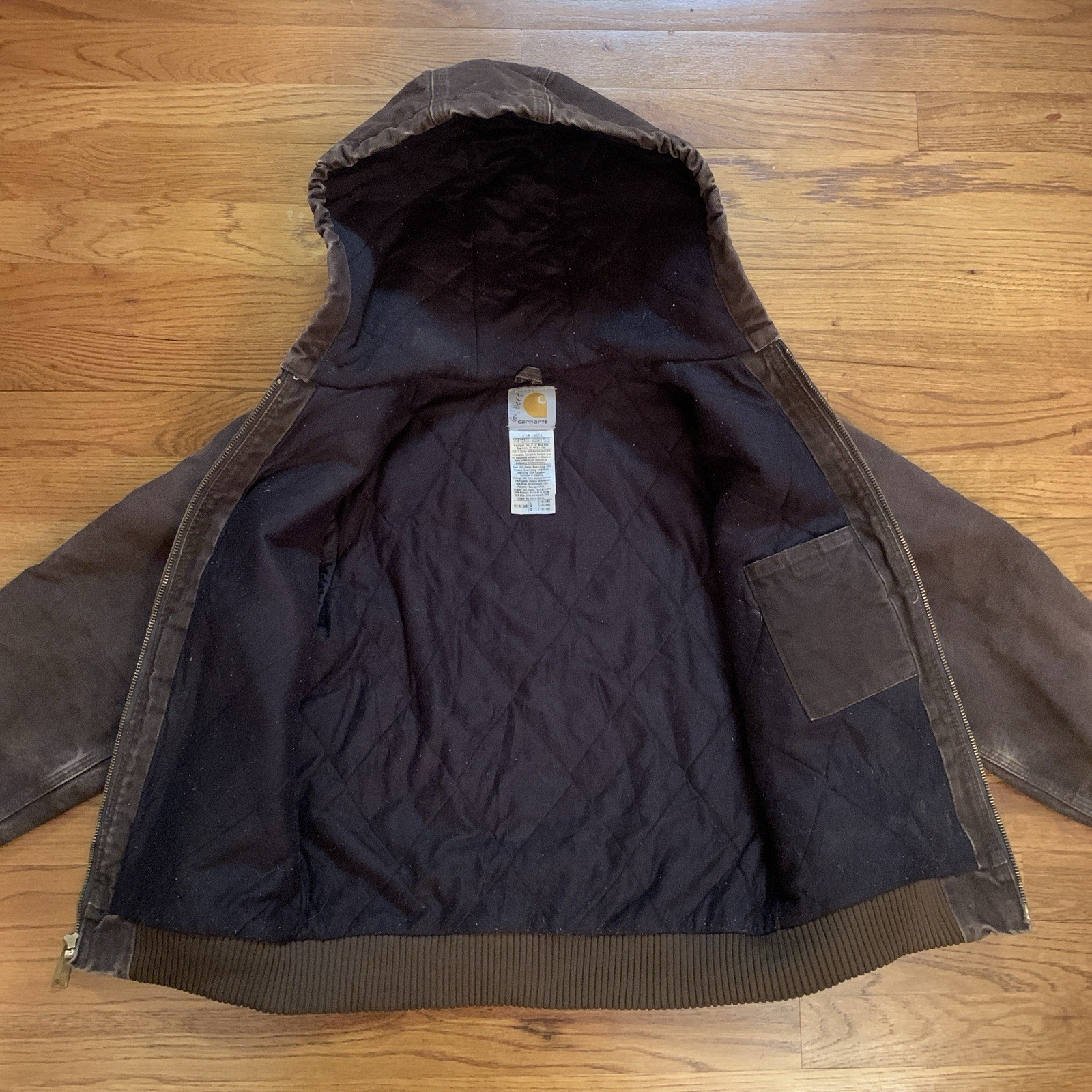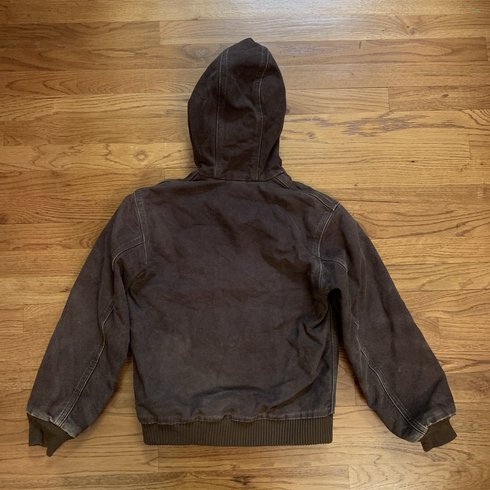 Carhartt Youth Jacket Hooded Coat Lined Outdoors J130 Dark Brown Kids Sz L 10/12