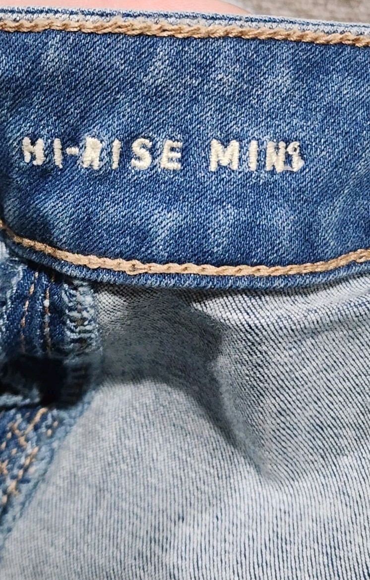 как выглядит Y2K American Eagle Denim Mini Skirt Womens 00 Light Wash High Rise Vintage фото