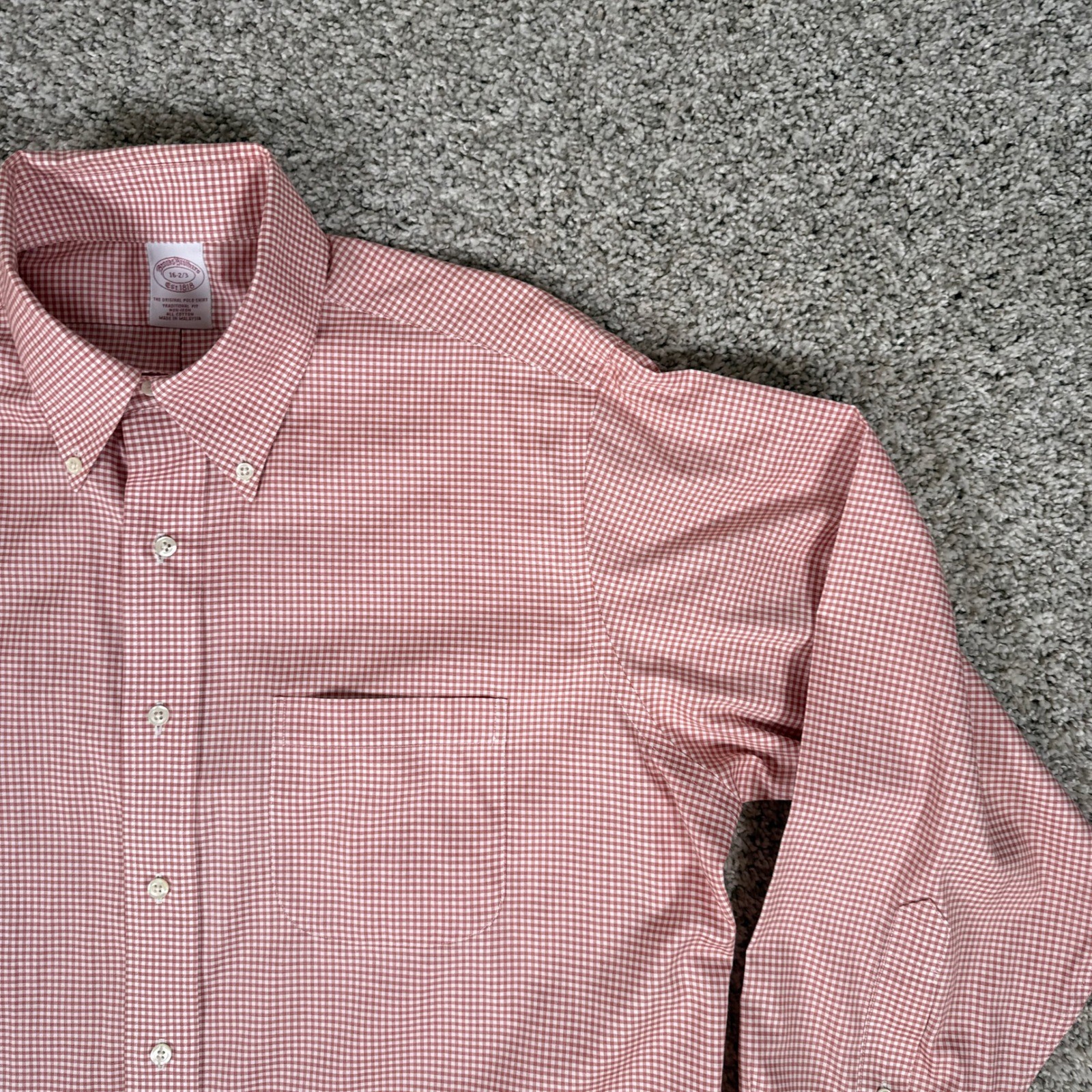 как выглядит Brooks Brothers Shirt Mens 16 2/3 Orange Red Gingham Traditional Fit Button Down фото