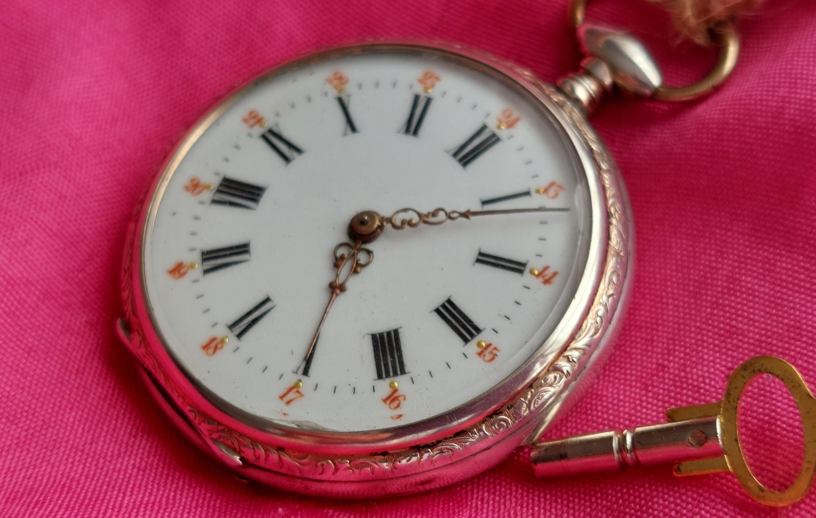 как выглядит Antique 0,800 Silver Key Wind Pocket Watch 1900