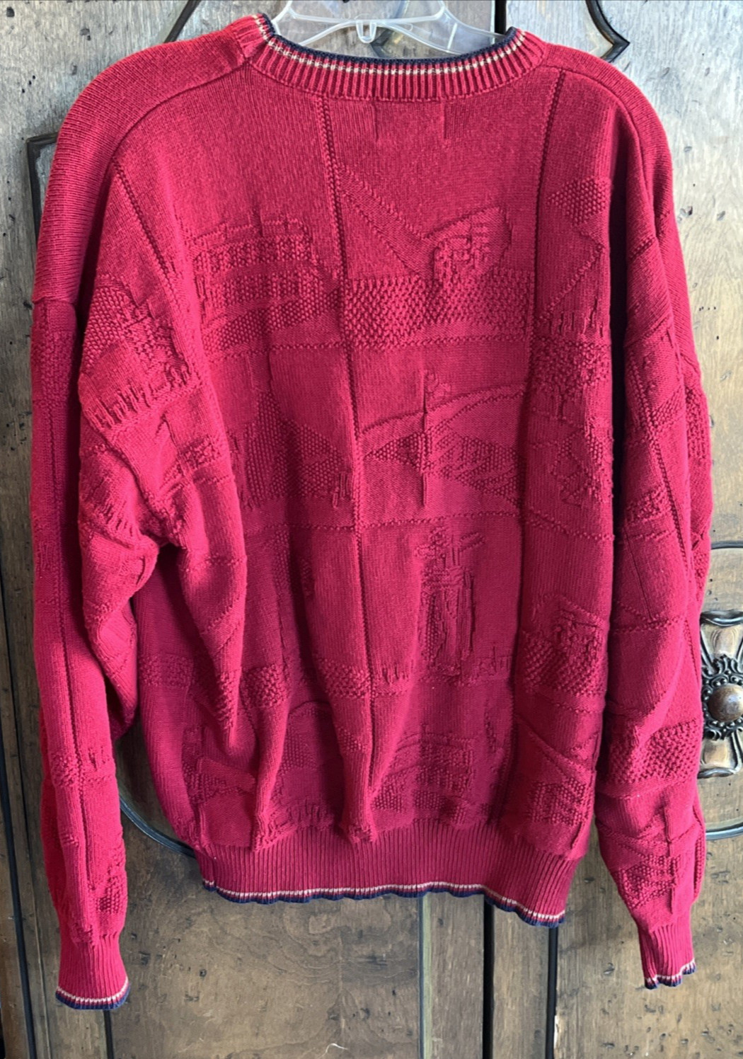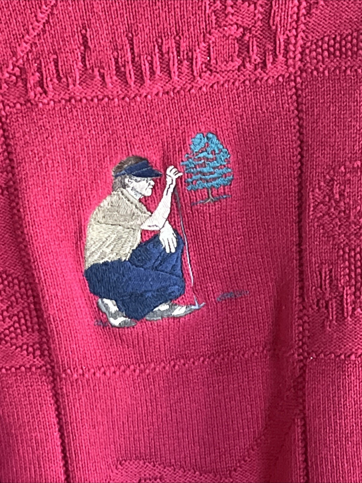как выглядит Vintage Golf Isle Of Cotton Red Embroidered Knit Sweater Golf Theme Mens Size XL фото