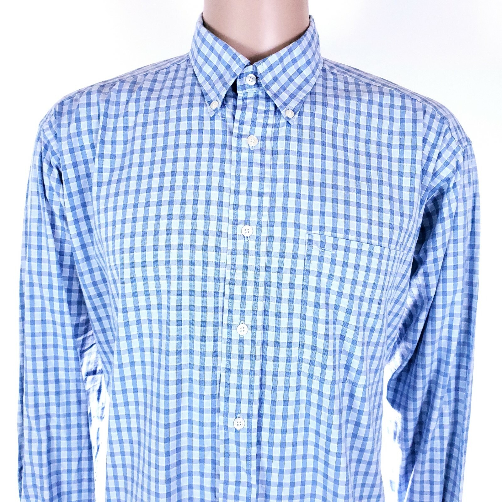 Tommy Hilfiger Men Button Front Shirt 100 Cotton Check Blue Size L