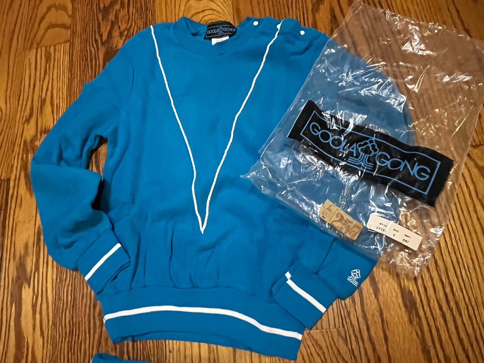 как выглядит NEW NOS 70s Goola Gong Ladies Acrylic Blue Track Gym Jogging Suit Sz Small фото