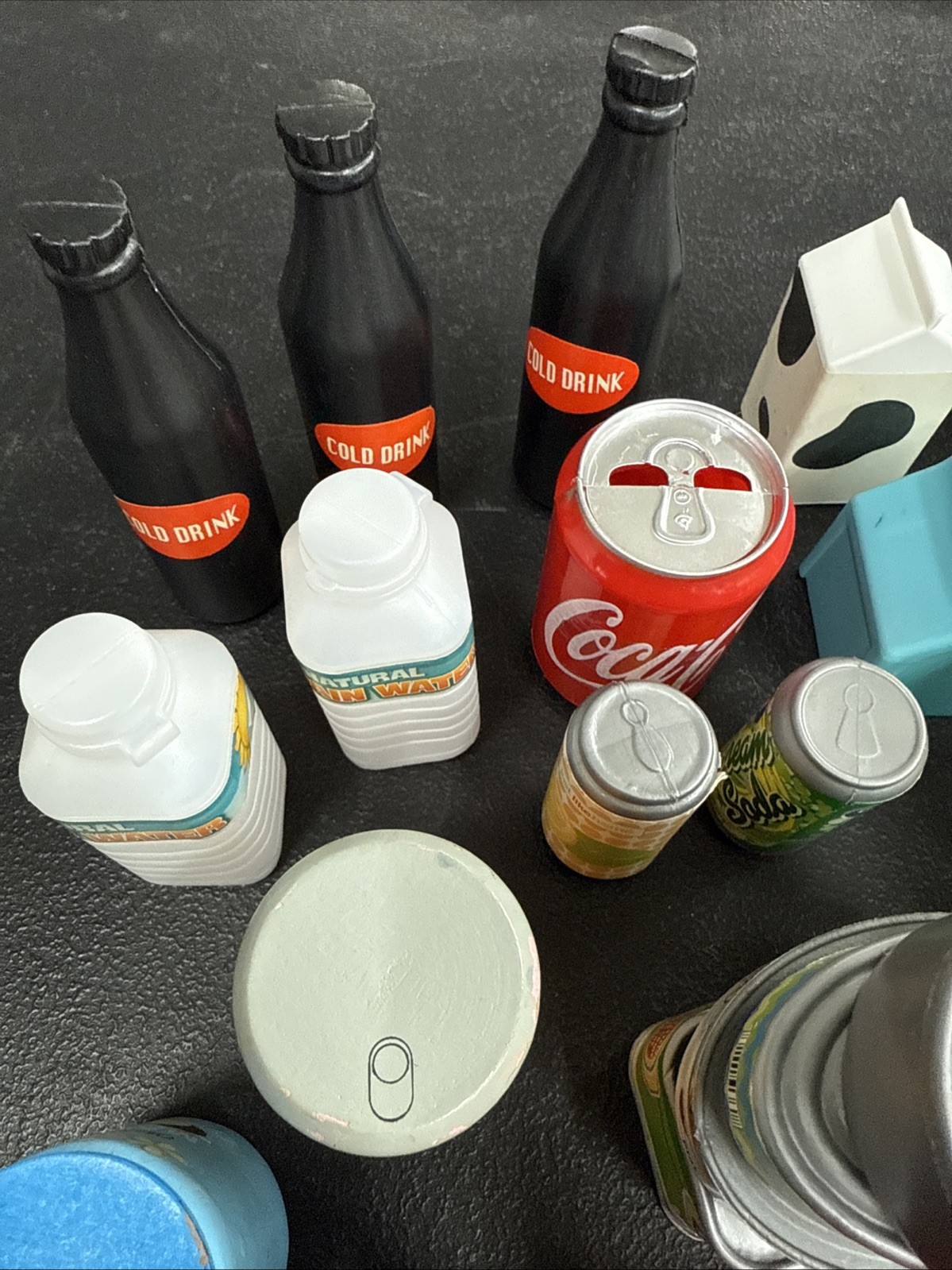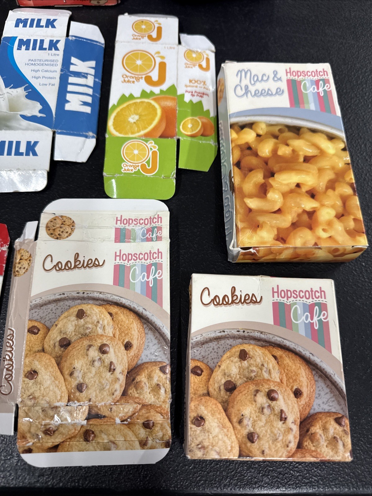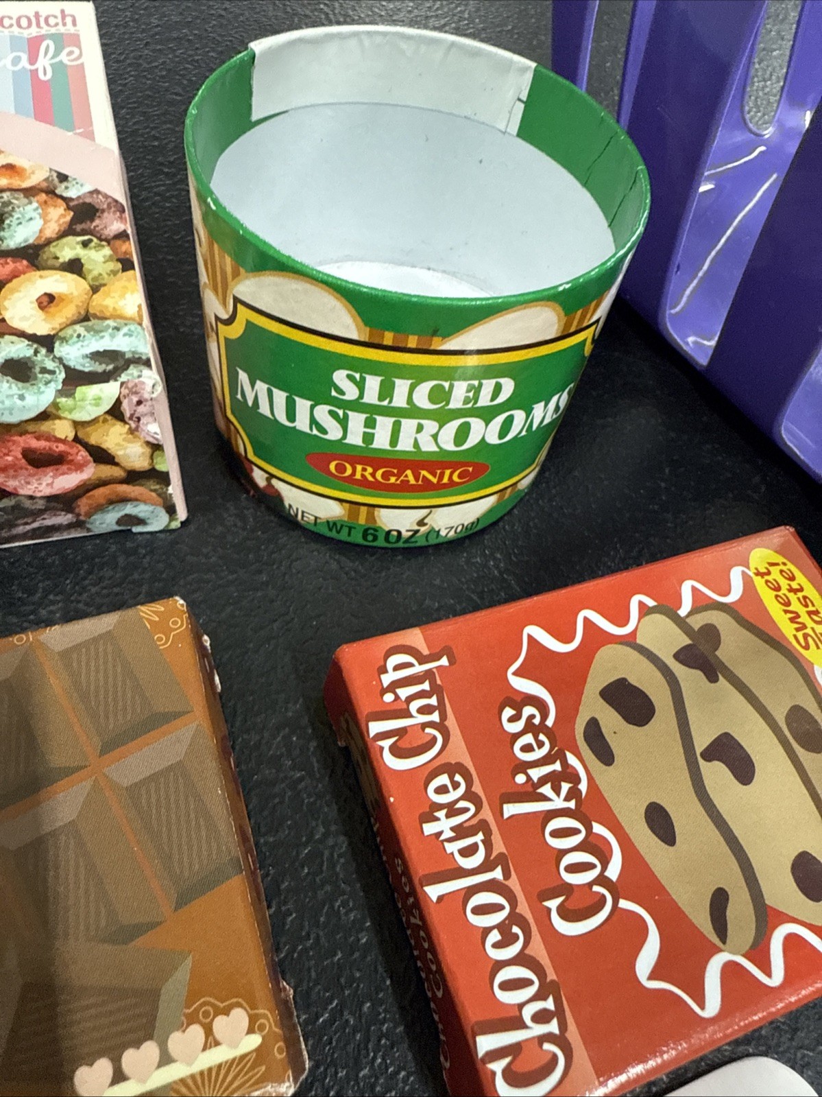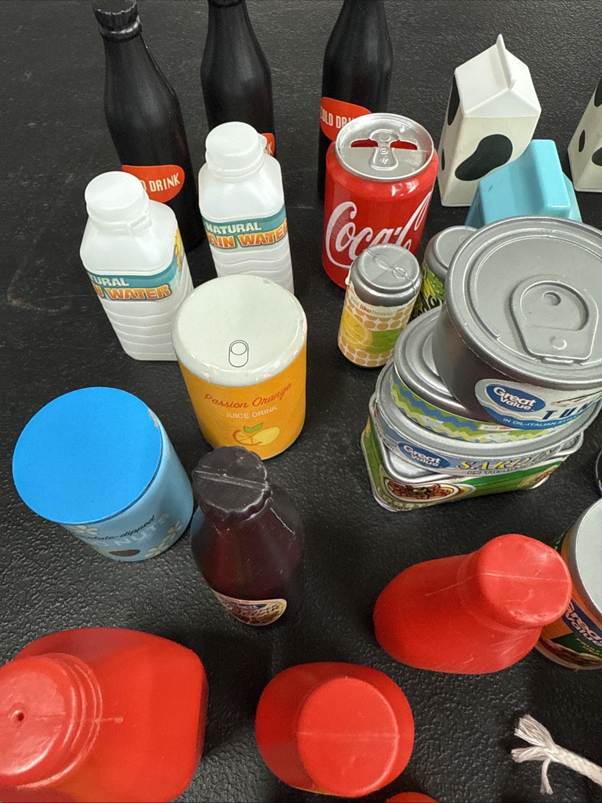 Huge Lot Pretend Play Food Boxes Cans Kitchen Cereal Spaghetti Desserts Milk OJ