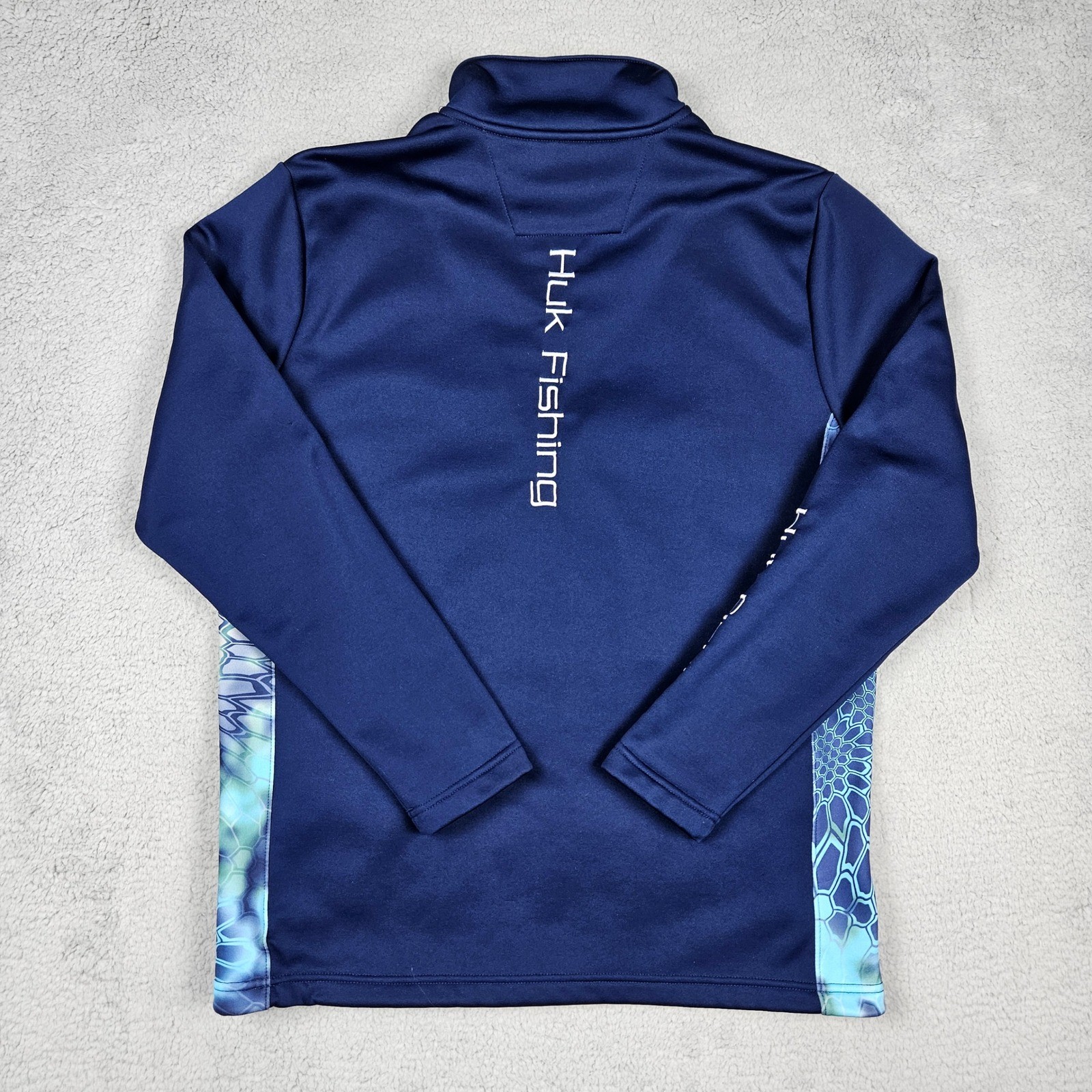 Huk Mens Medium Blue 1/4 Zip Pullover Kryptek Camo Performance Fishing Fleece