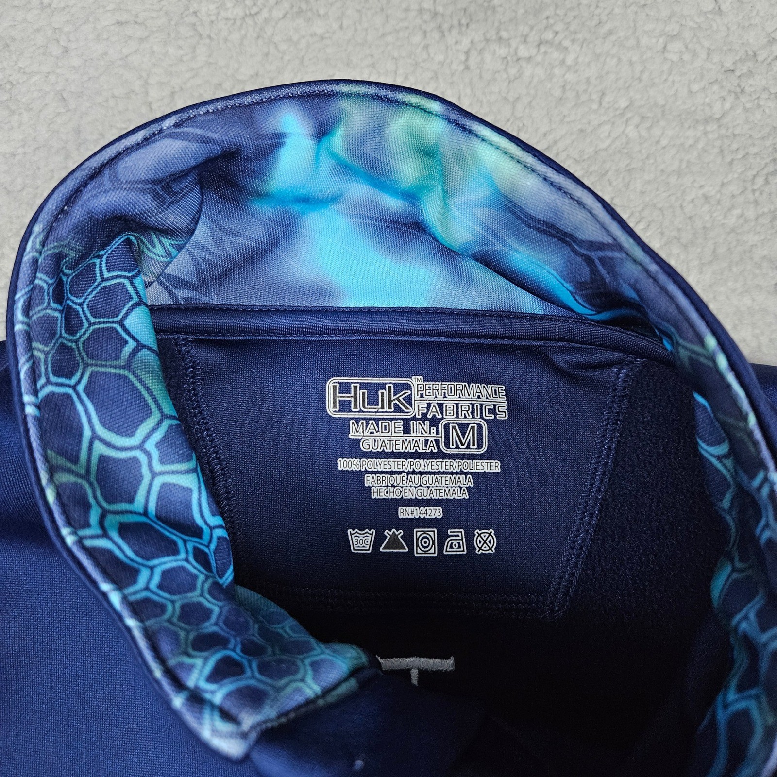 как выглядит Huk Mens Medium Blue 1/4 Zip Pullover Kryptek Camo Performance Fishing Fleece фото