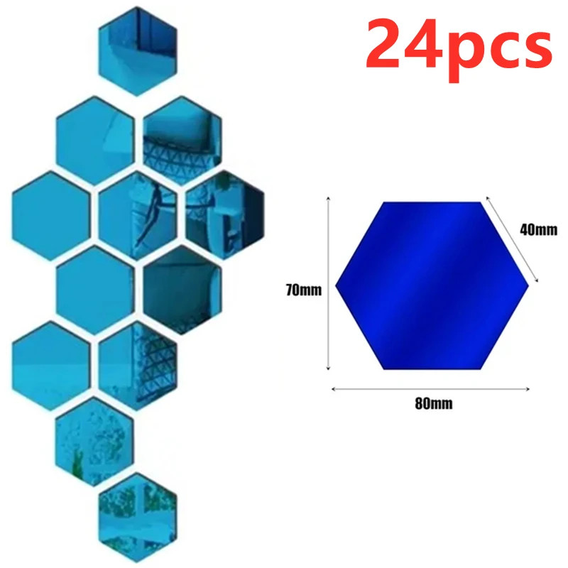 12/24Pcs 3D Hexagon Mirror Wall Stickers DIY Removable Self Adhesive Aesthetic M