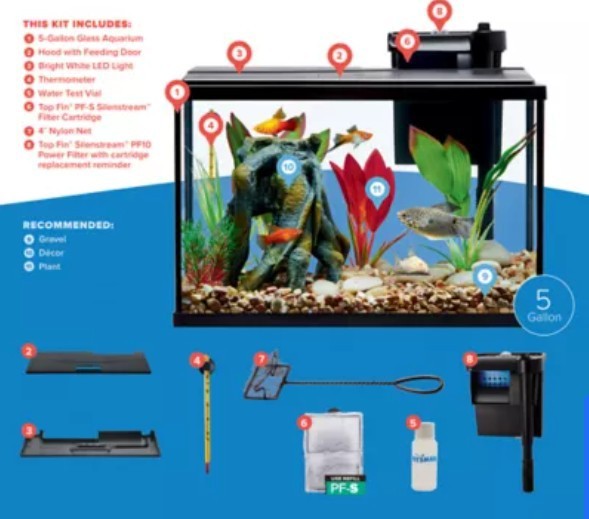 Accessories: 5-Gallon Glass Tank, Hood, LED Light, Medium Power Filter, Medium