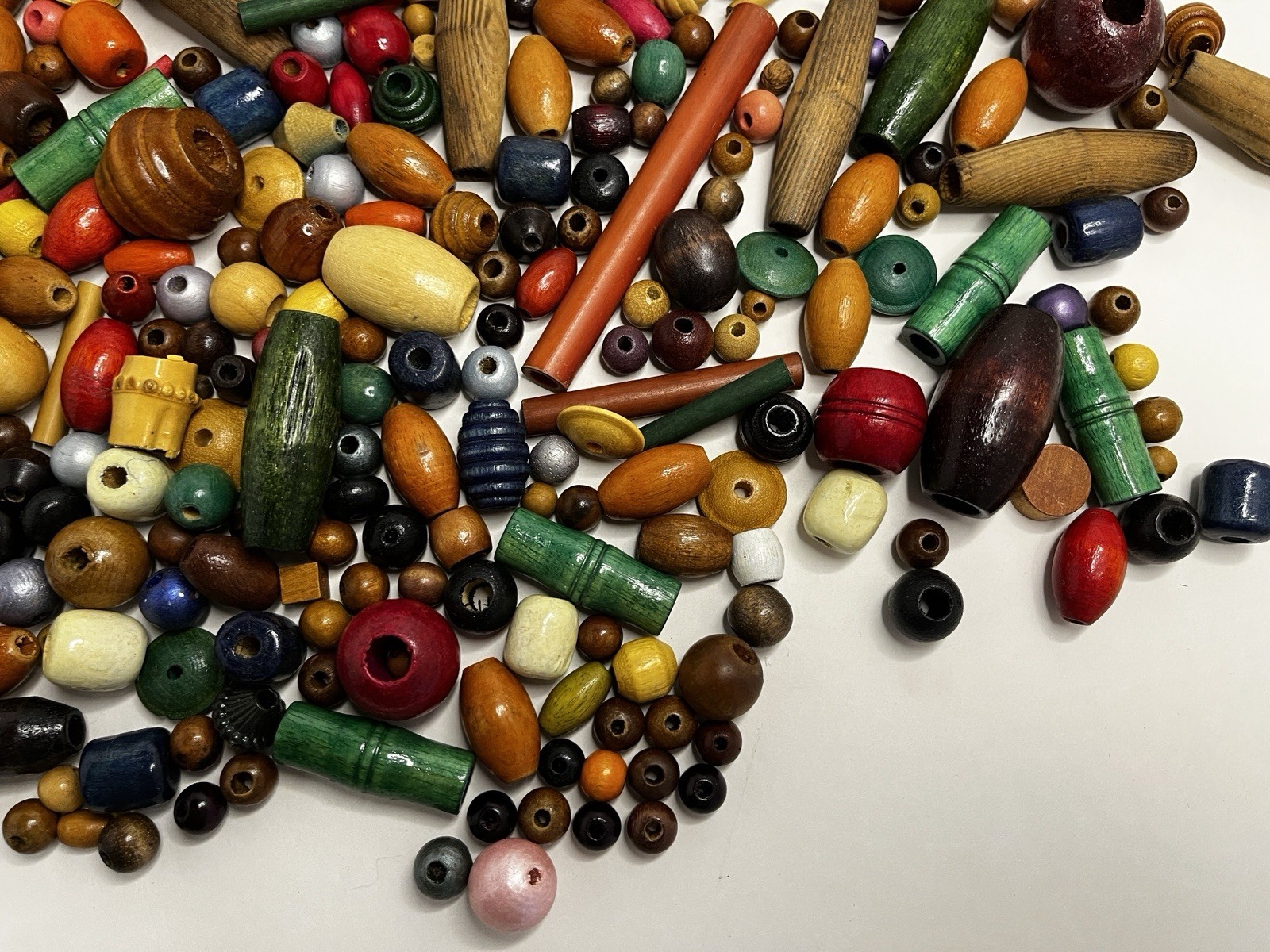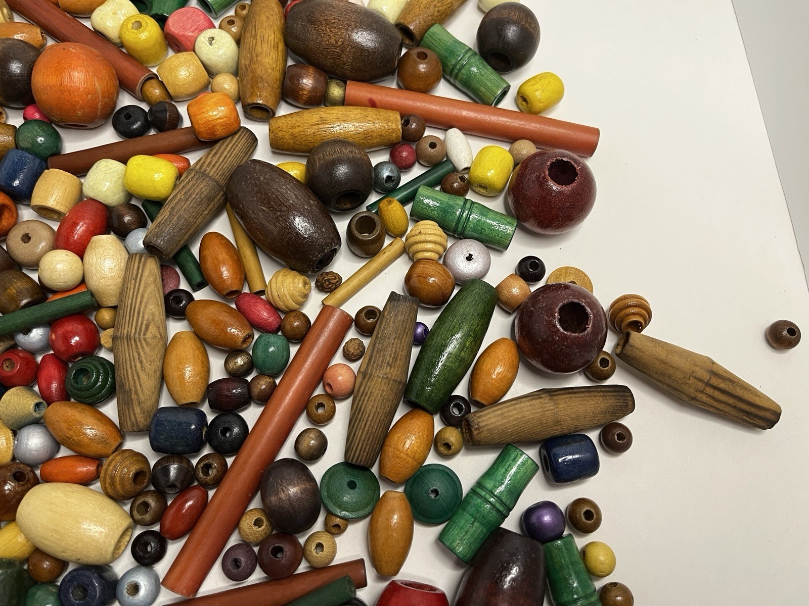 Vintage Macrame Bead Lot, Colorful Wood Various Shapes Sizes, 1 lb 13 Oz