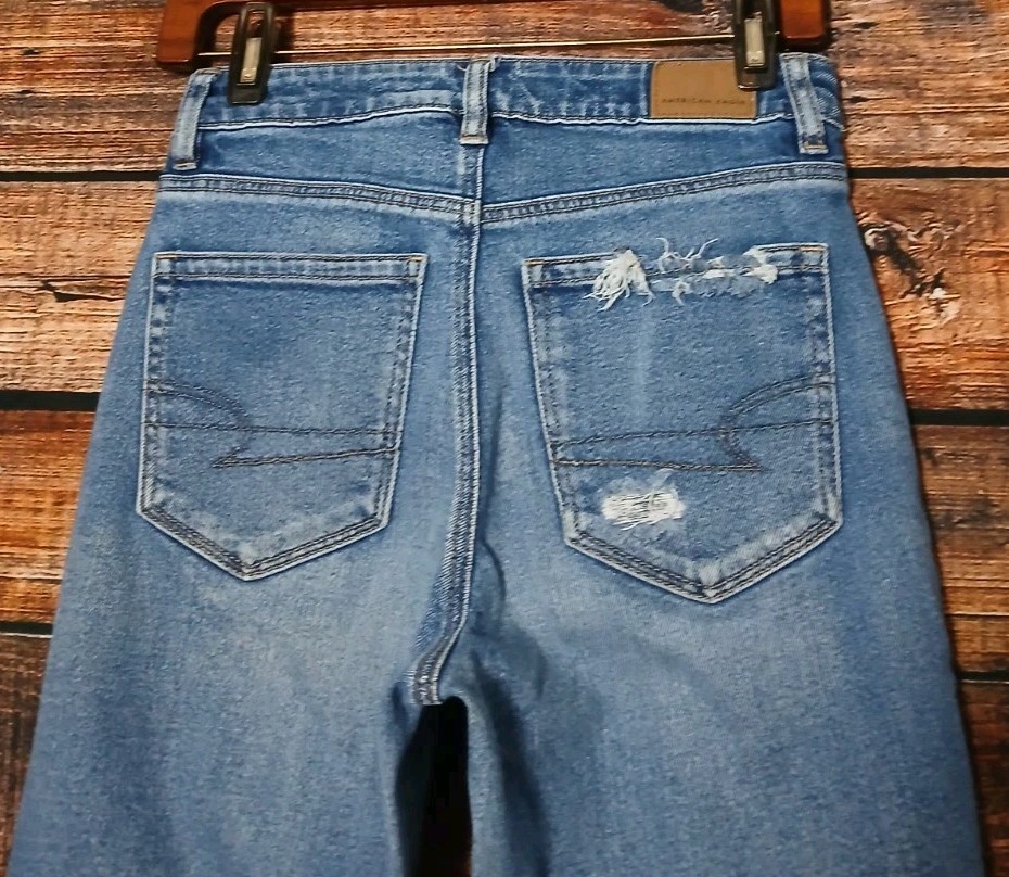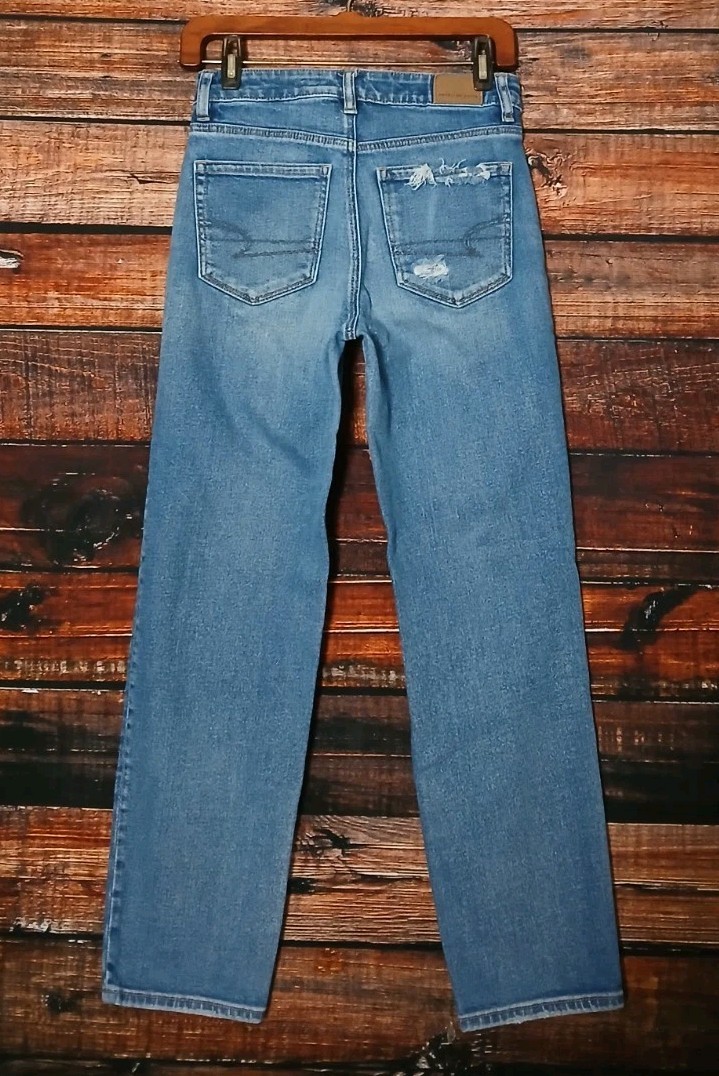 American Eagle Jeans 2 Mom Straight High Rise Distressed Blue Denim Stretch