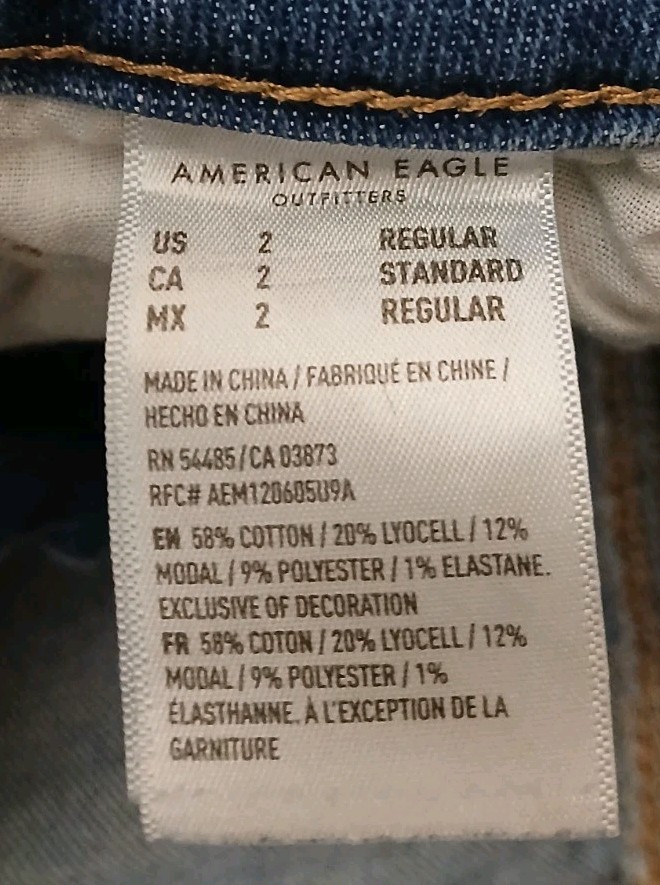 как выглядит American Eagle Jeans 2 Mom Straight High Rise Distressed Blue Denim Stretch фото