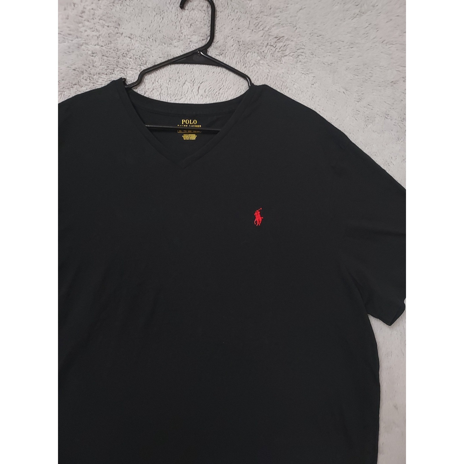 как выглядит Polo Ralph Lauren Shirt Mens XXL 2XL Black V Neck Short Sleeve Red Pony Logo фото