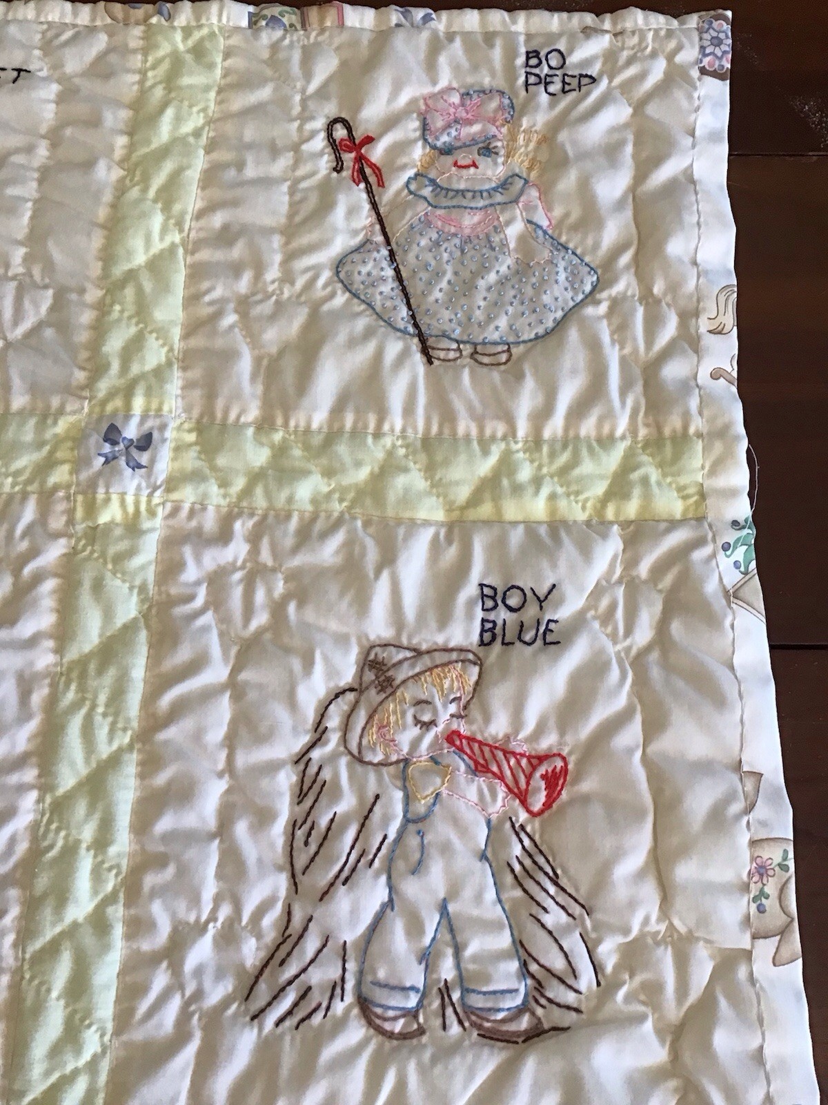 как выглядит Vintage Mother Goose Nursery Rhymes Baby Child Quilt Blanket Handmade 35X47 фото