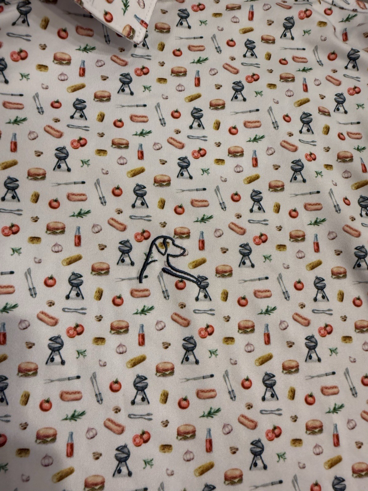 Rhoback Men s Polo Size XL Grill Hot Dog Hamburgers Print Rare Golf Shirt