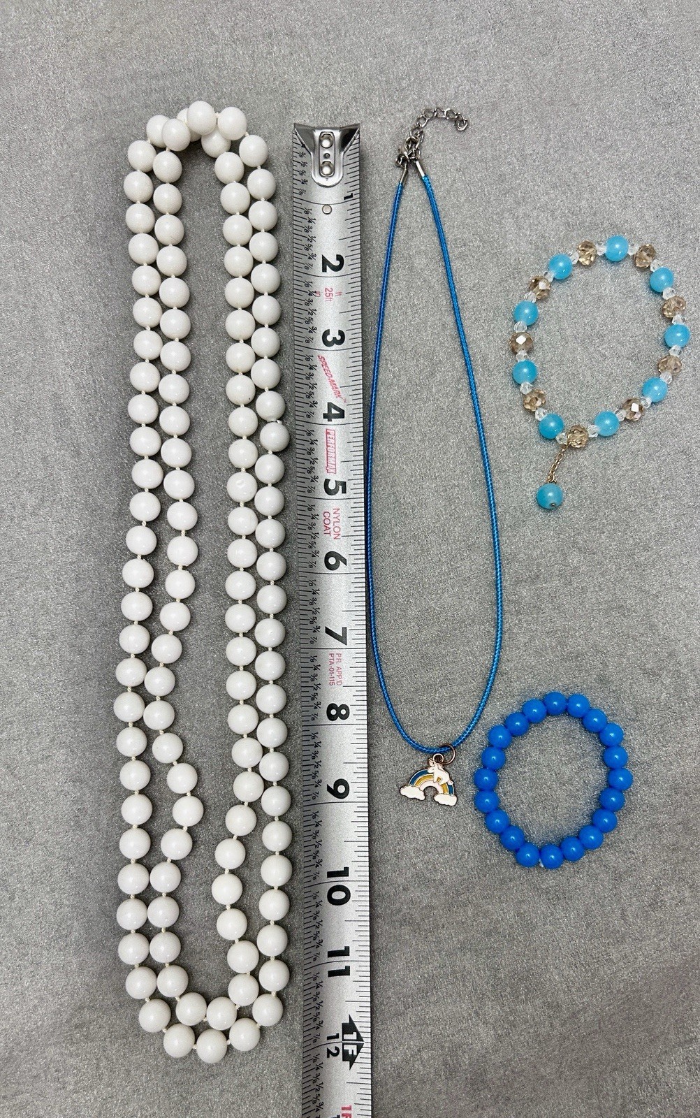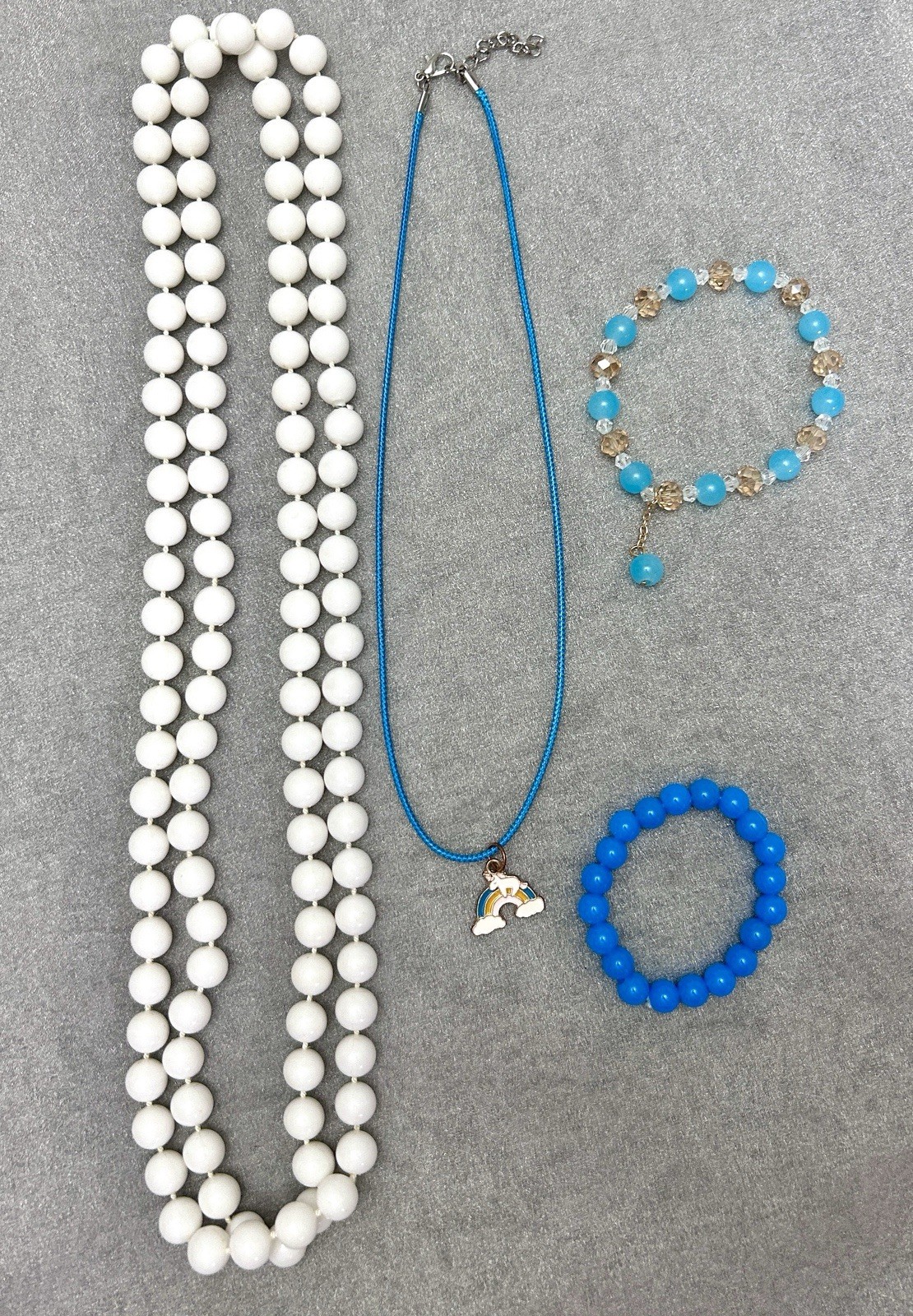 Kids Girls Necklace and Bracelet Set Unicorn Rainbow 4pc Set Blue