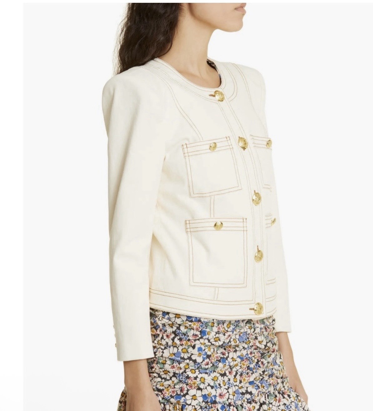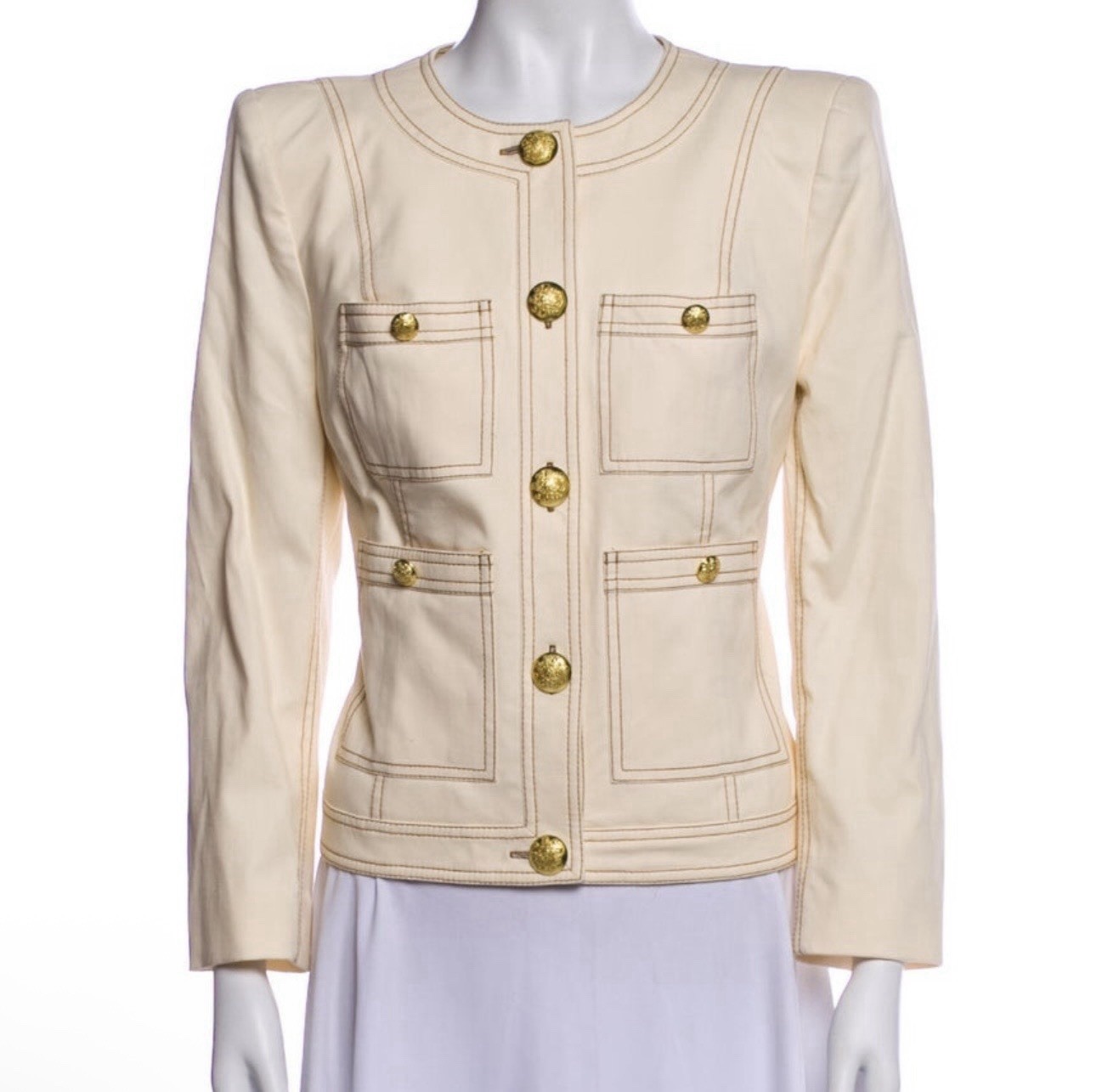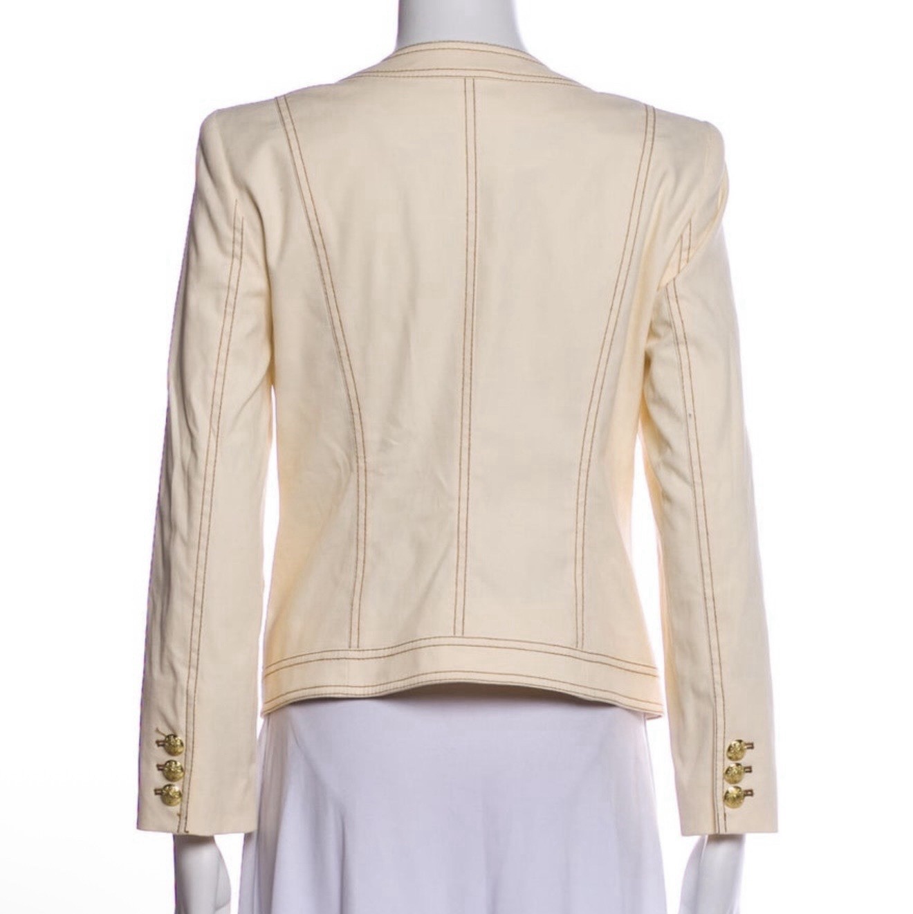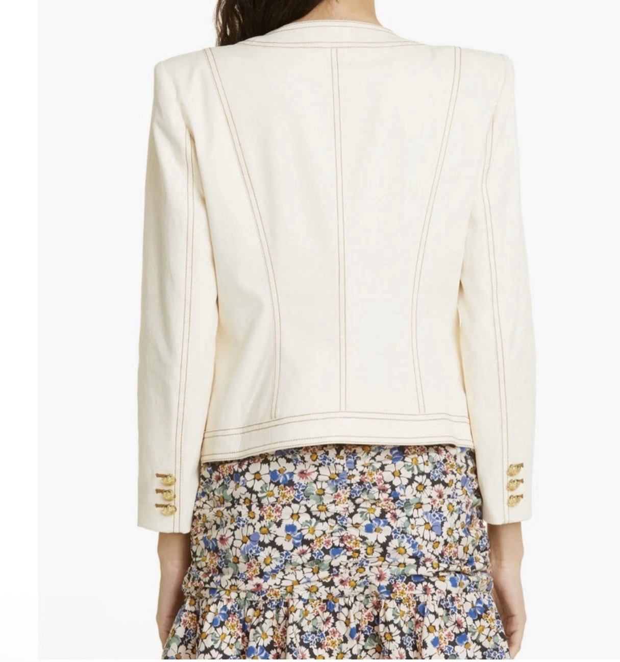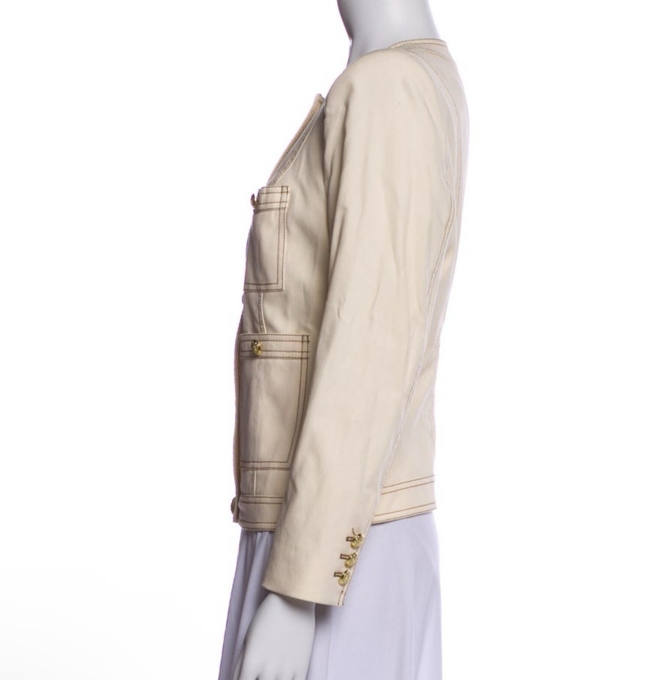 как выглядит VERONICA BEARD Ferazia Collarless Textured Jacket Ecru/Gold Buttons Size 8 NWOT фото