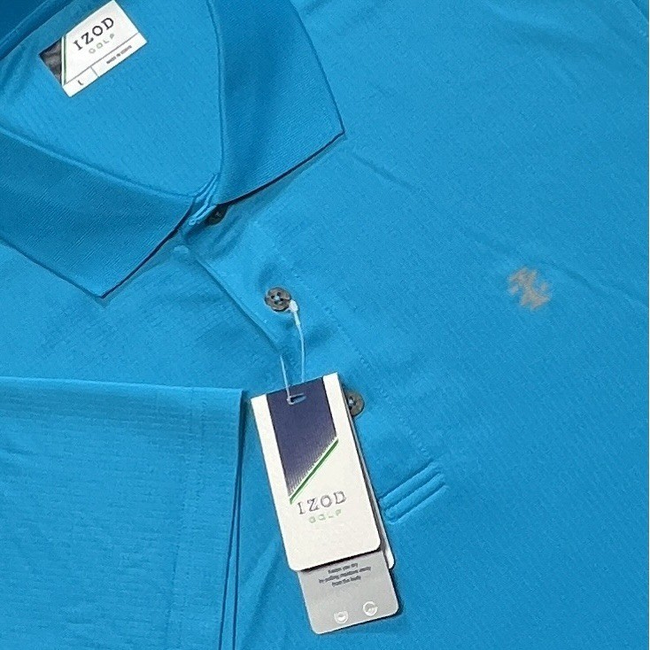 IZOD Golf Polo Shirt Mens Large Hawaiian Ocean Blue Stretch Performance New