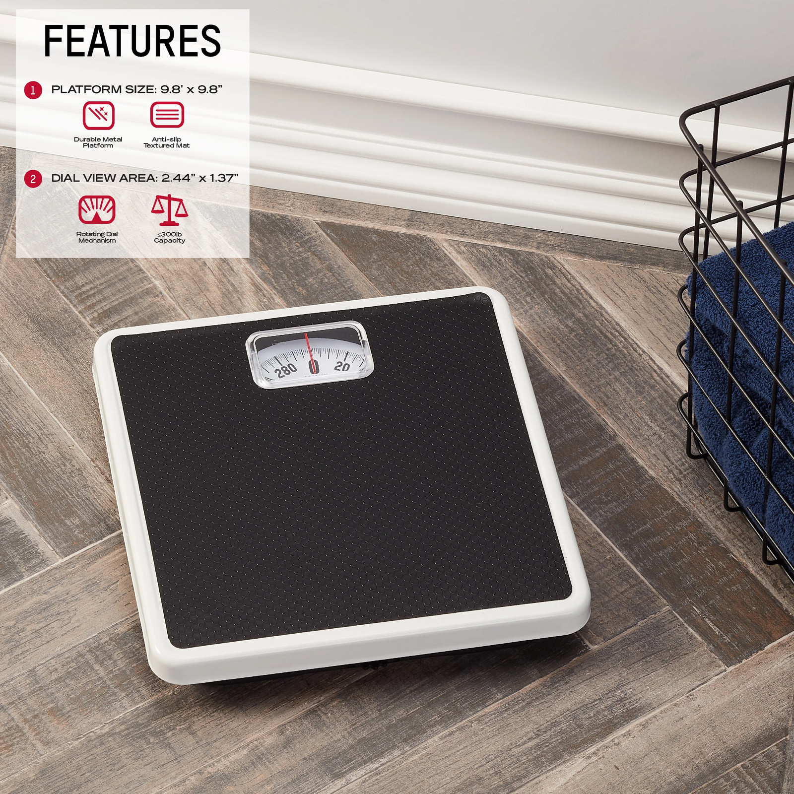Analog Bathroom Scale with 300 lb Max Capacity