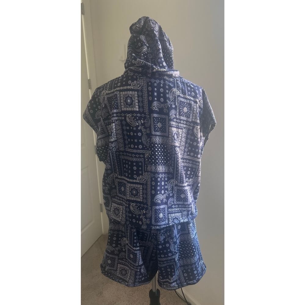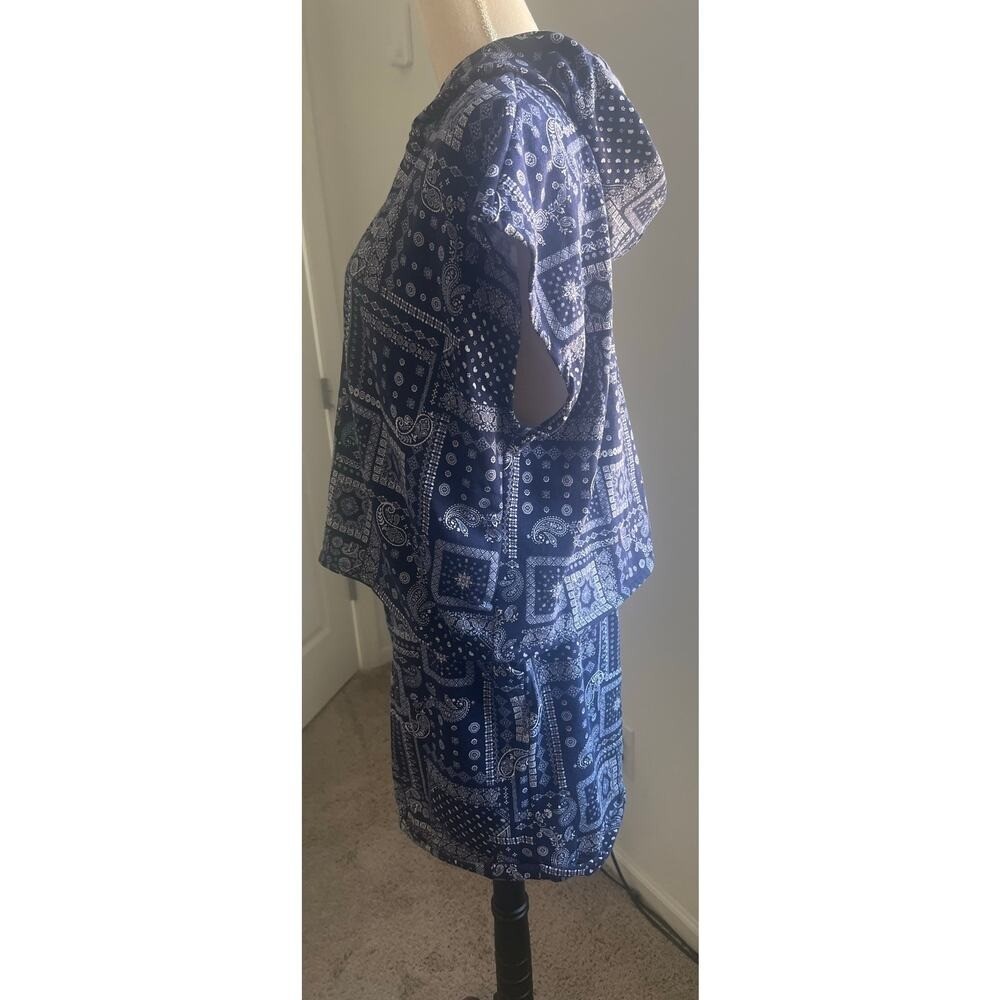 как выглядит NWOT Almost Famous Blue White Floral Fleece Sleeveless Hoodie Top /Shorts Set 2X фото