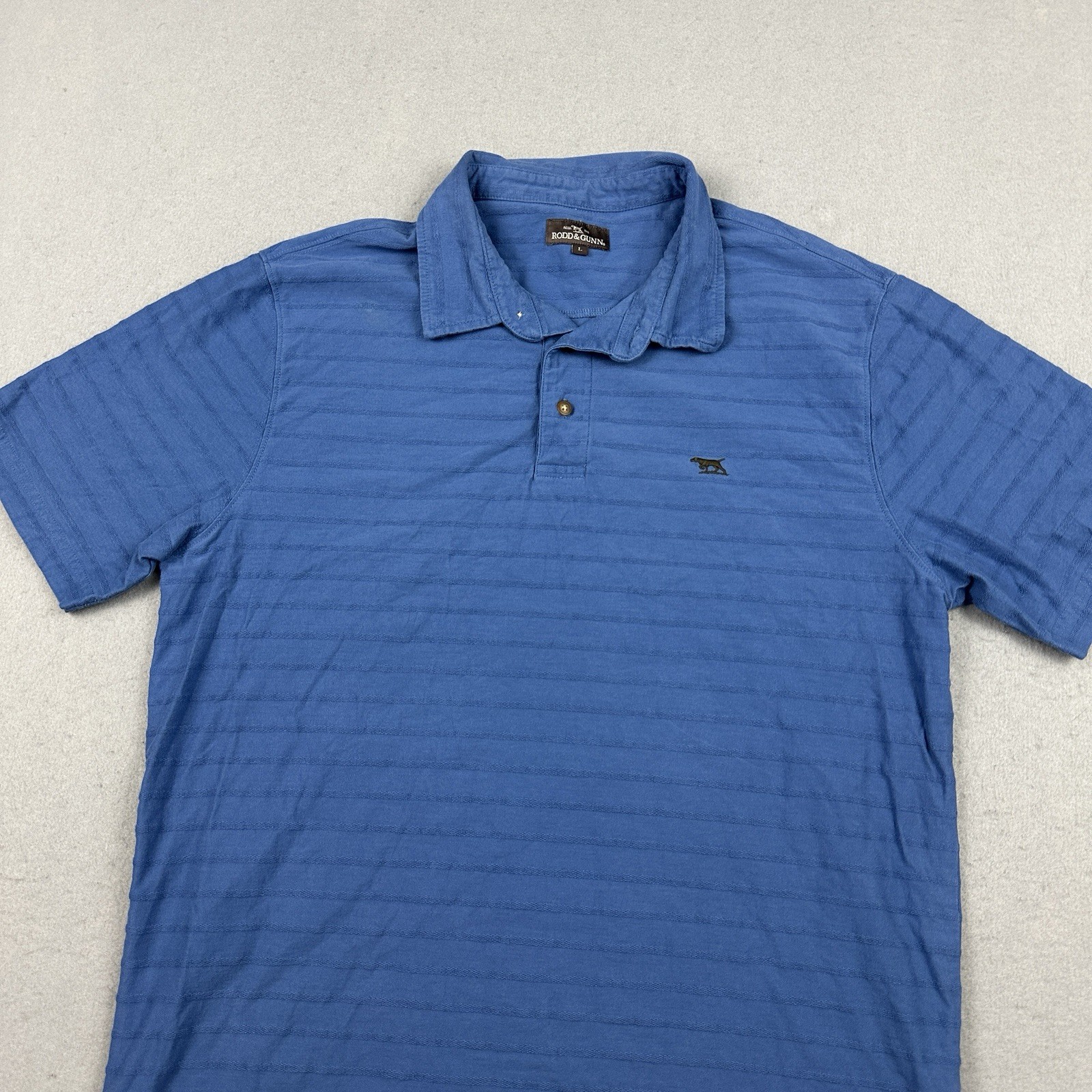 Rodd Gunn Polo Shirt Men Large Blue Textured Stripe Short Sleeve Collar Logo L