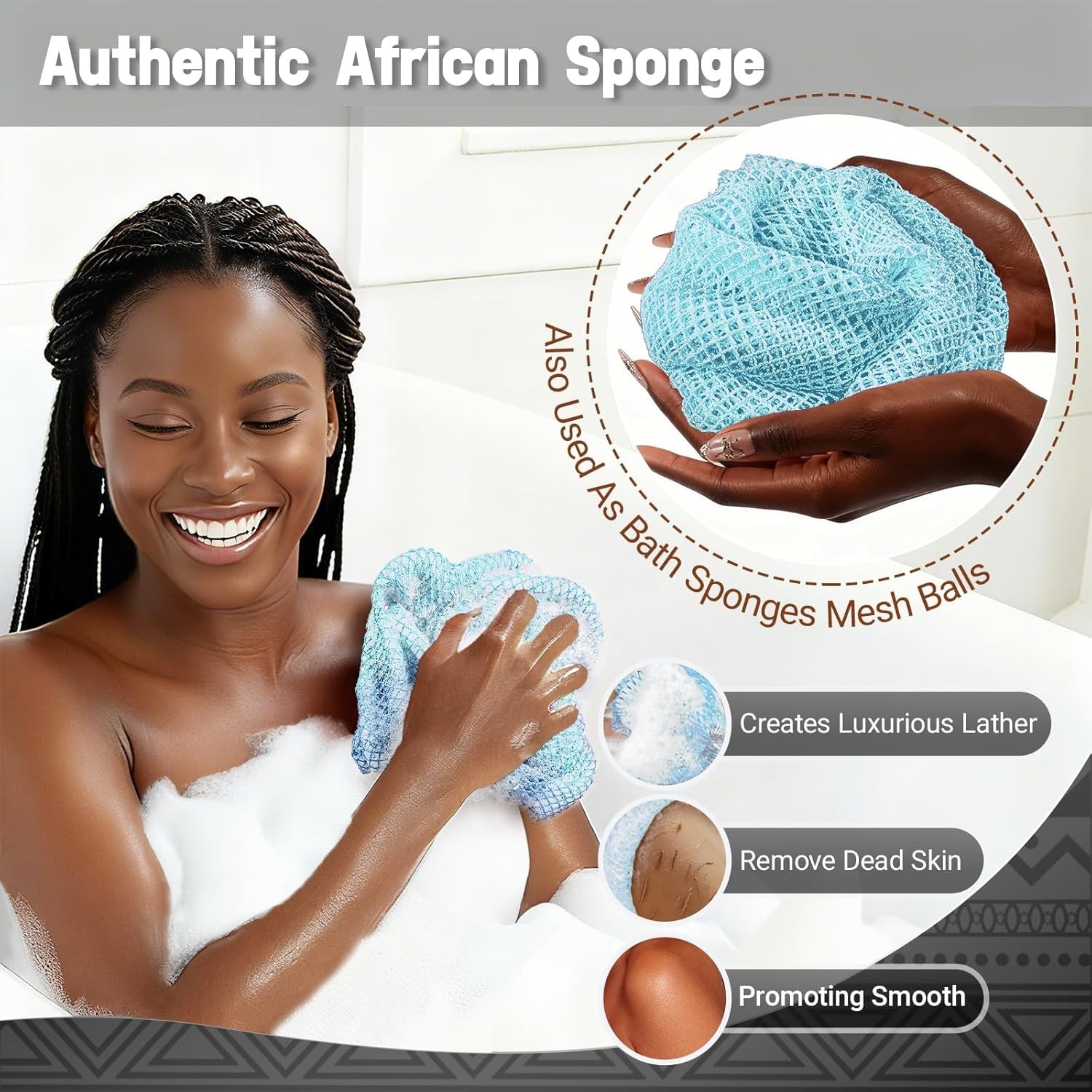 African Net Sponge Authentic 2 Pieces Gentle Exfoliating Body Scrubber Bath Spon