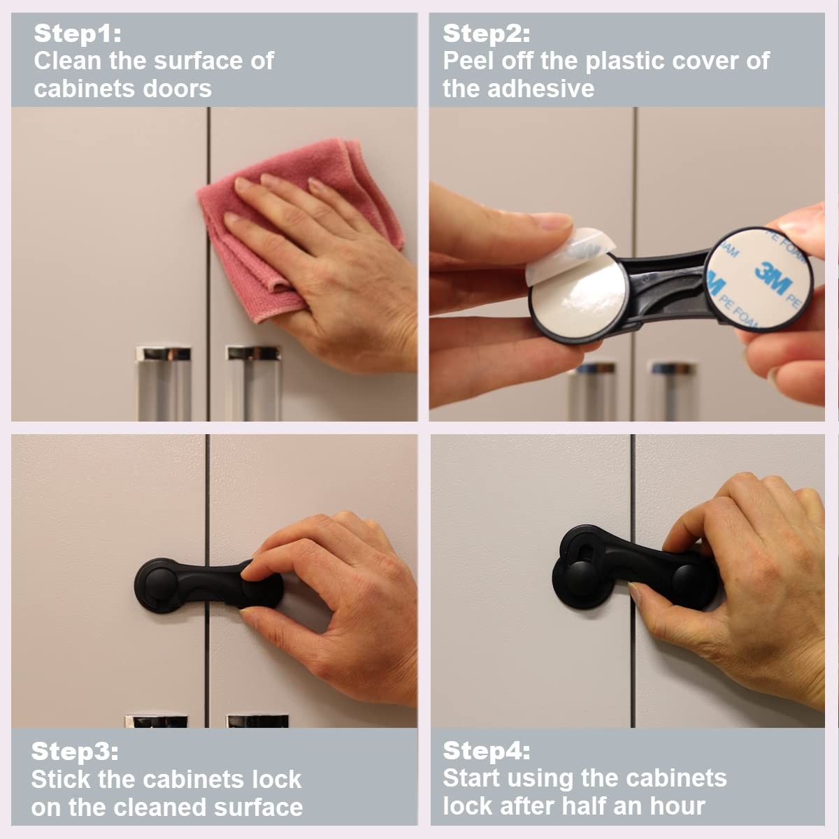 Cabinet Locks for Babies and Child Safety, 4 Pack Childproof Latches with...