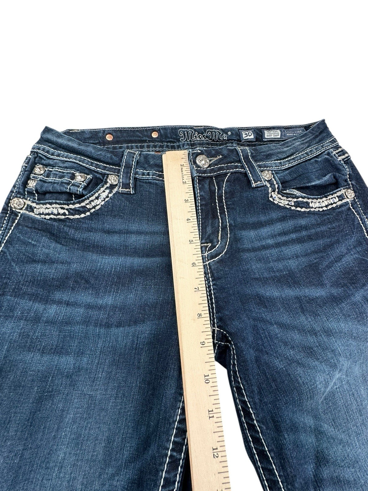как выглядит Miss Me Jeans Mid Rise Easy Crop Bling Embellished Jeans Size 30 фото
