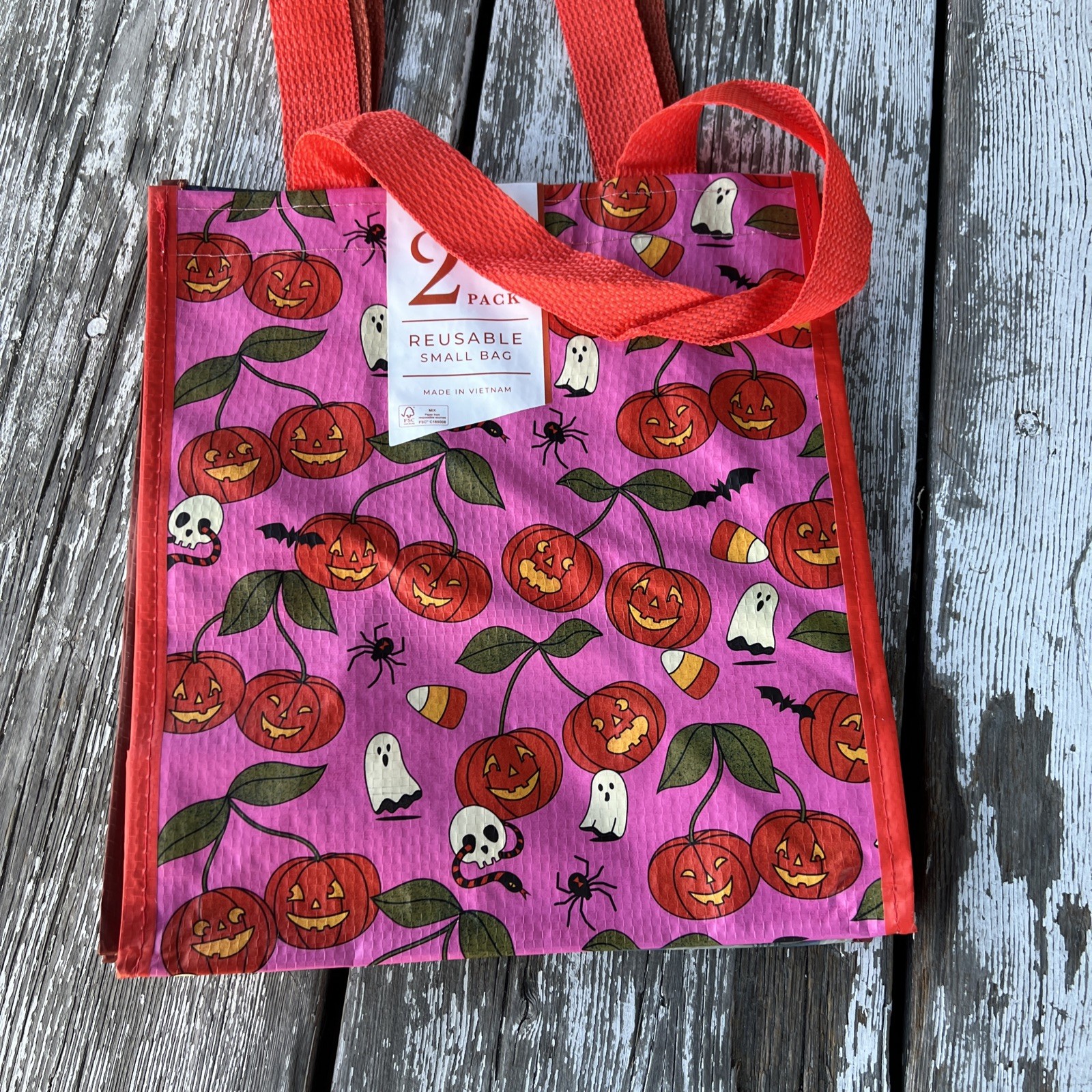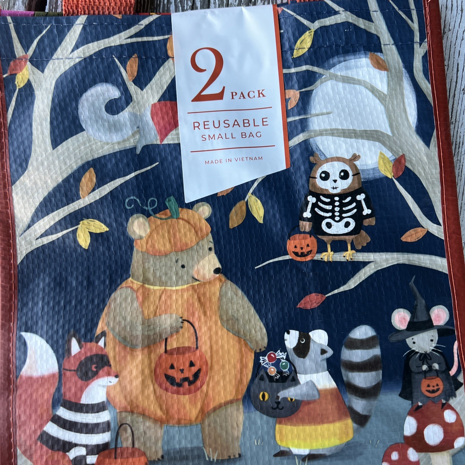 как выглядит NWT Halloween 2 Reusable Shopping Bags Cherries Skulls GHOSTS  Woodland Animals фото