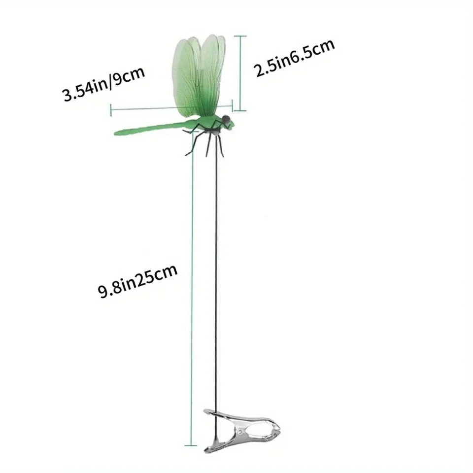 12 Fake Dragonfly Clips Clip on Dragonfly for Outdoors 3D Dragonfly Garden Decor