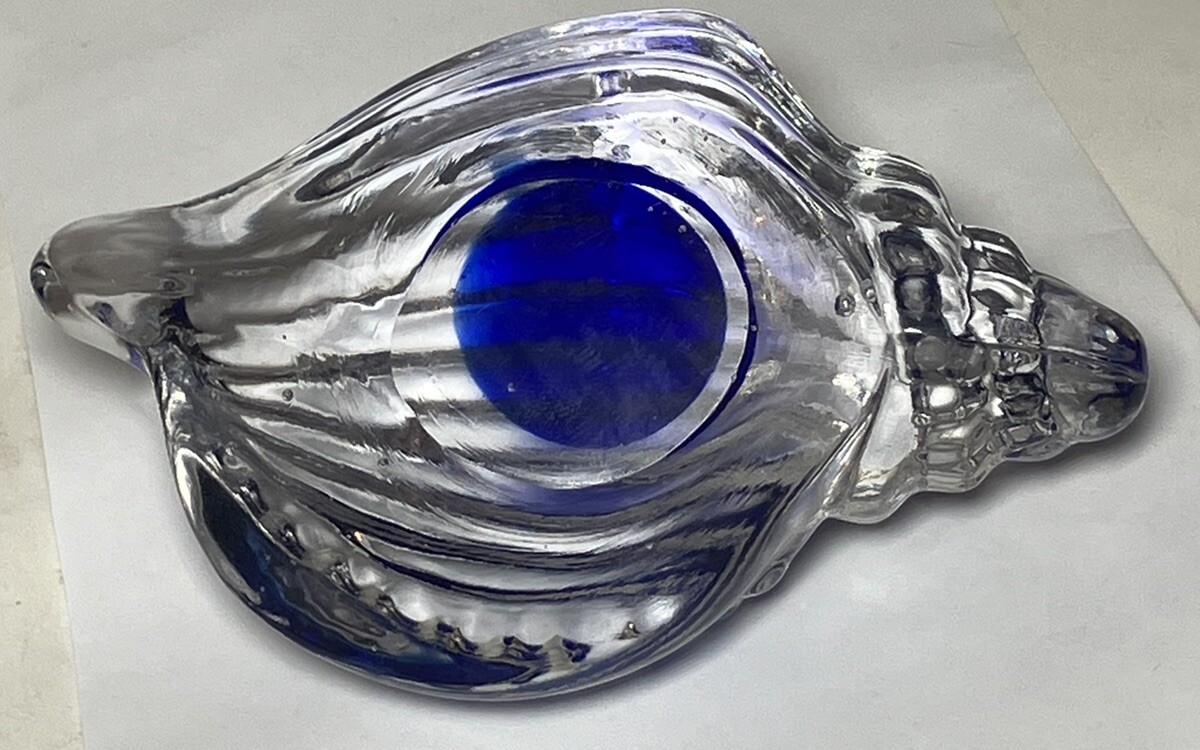 Art Glass Sea Shell Paperweight Clear and Blue Nautical Seaside Ocean 4 Conch