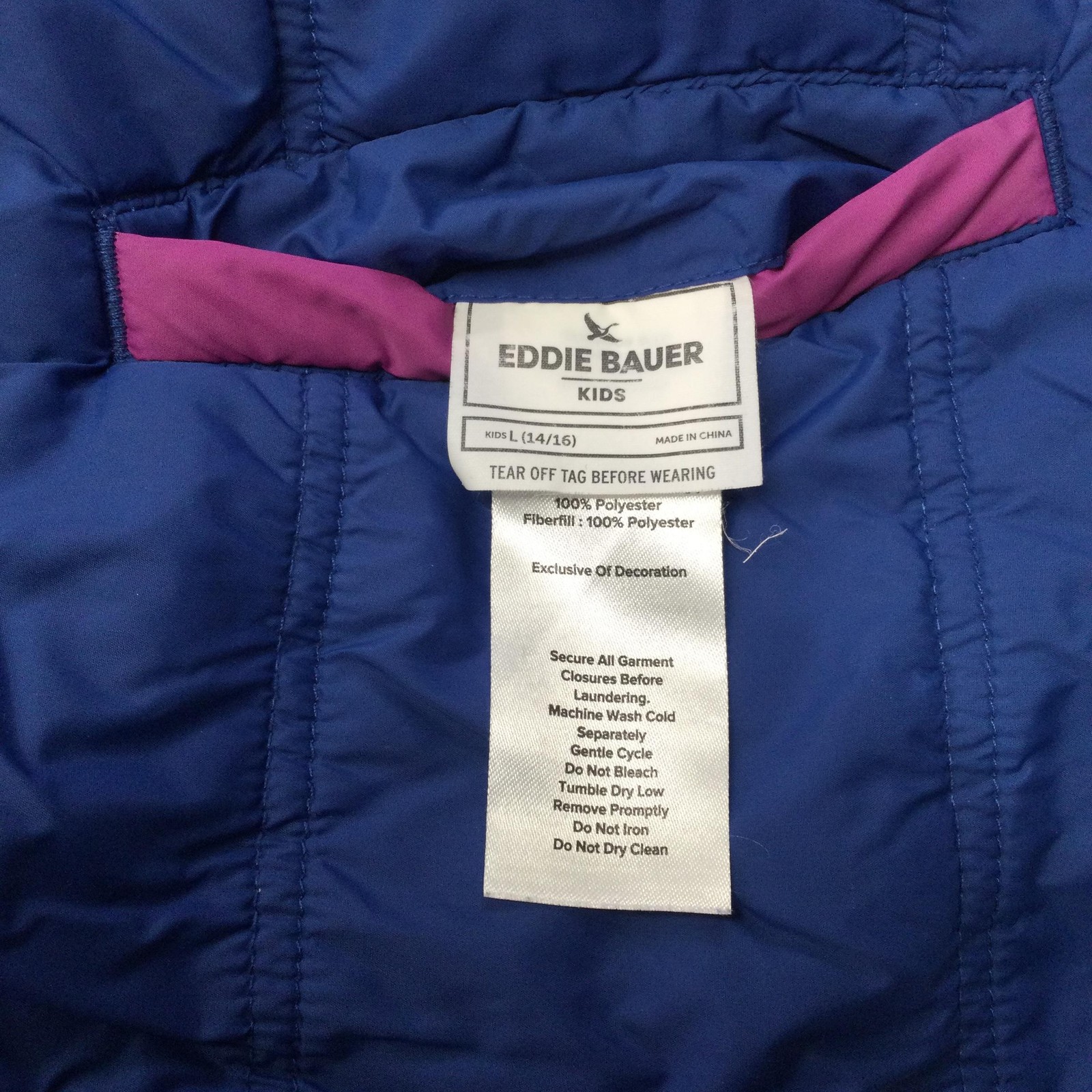 как выглядит Eddie Bauer Jacket Youth Large 14/16 Purple Blue Hooded Puffer Sherpa Lined фото