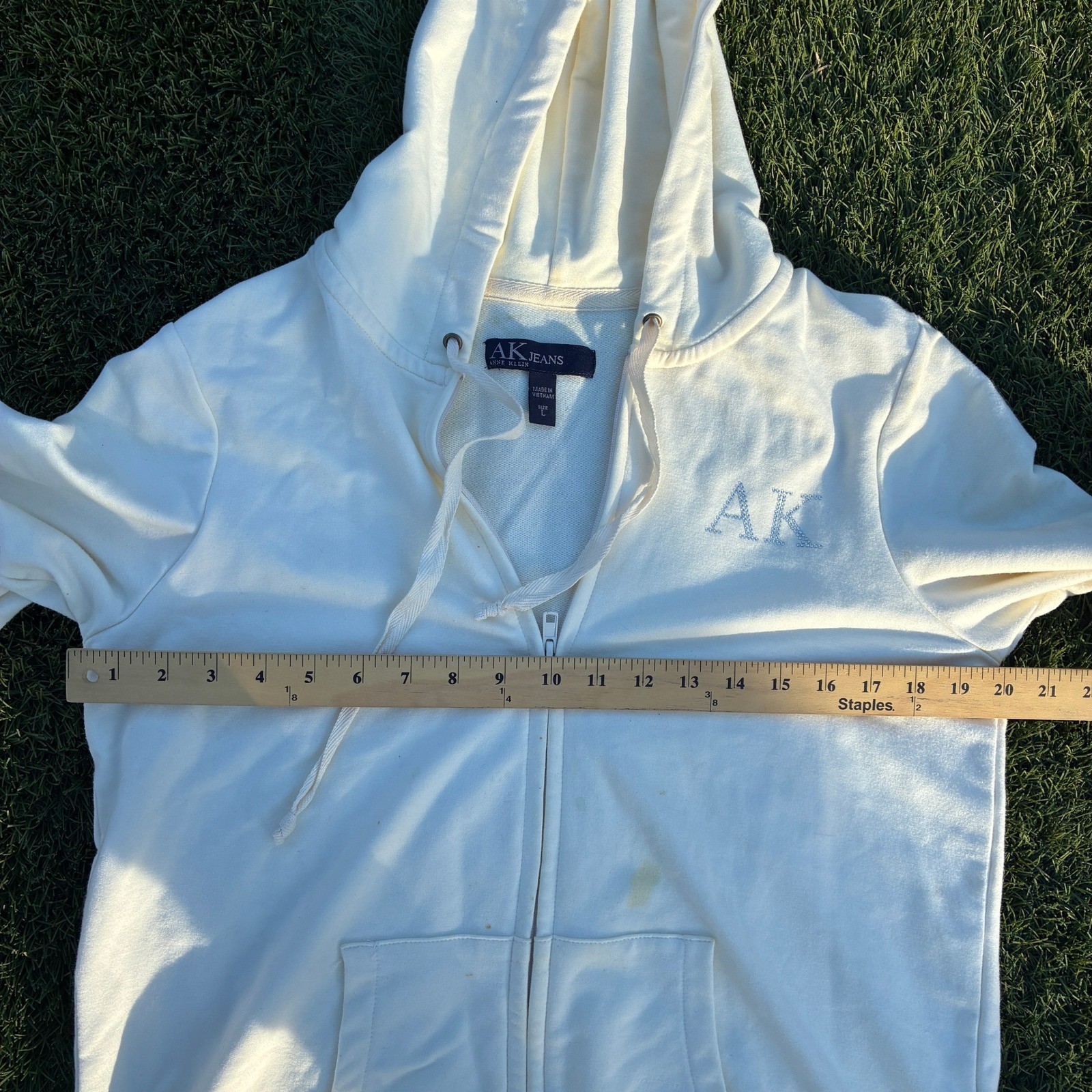Vintage Anne Klein AK Sport Womens L White Tracksuit Set Hoodie Wide Leg Pants