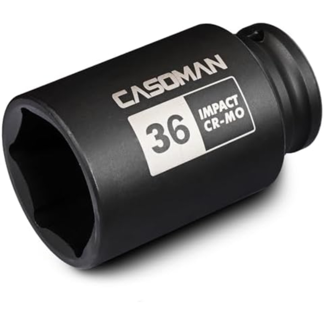 1/2 Drive X 36 Mm Deep 6 PT Impact Socket, CR-MO, Drive 6 Point Axle Nut Socket
