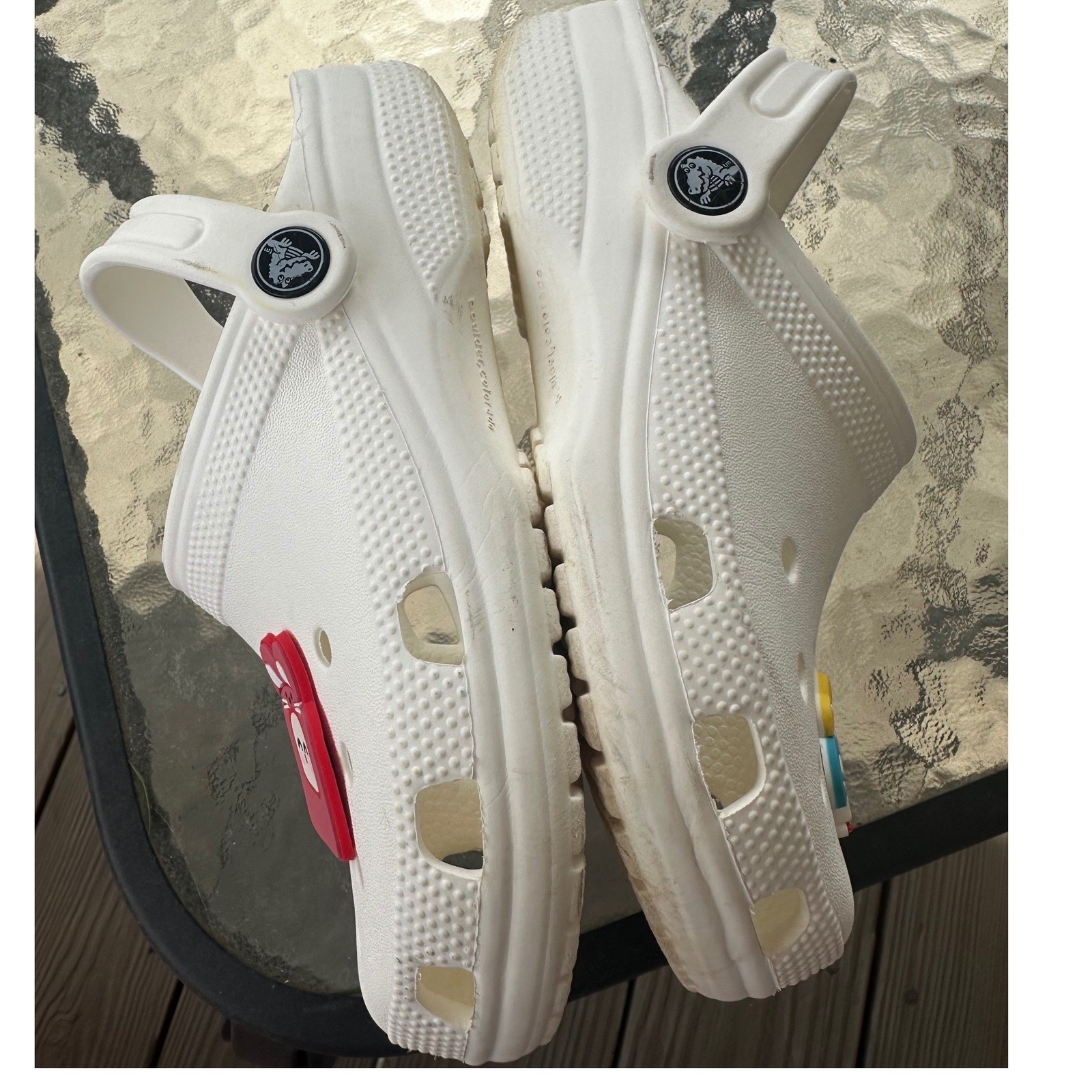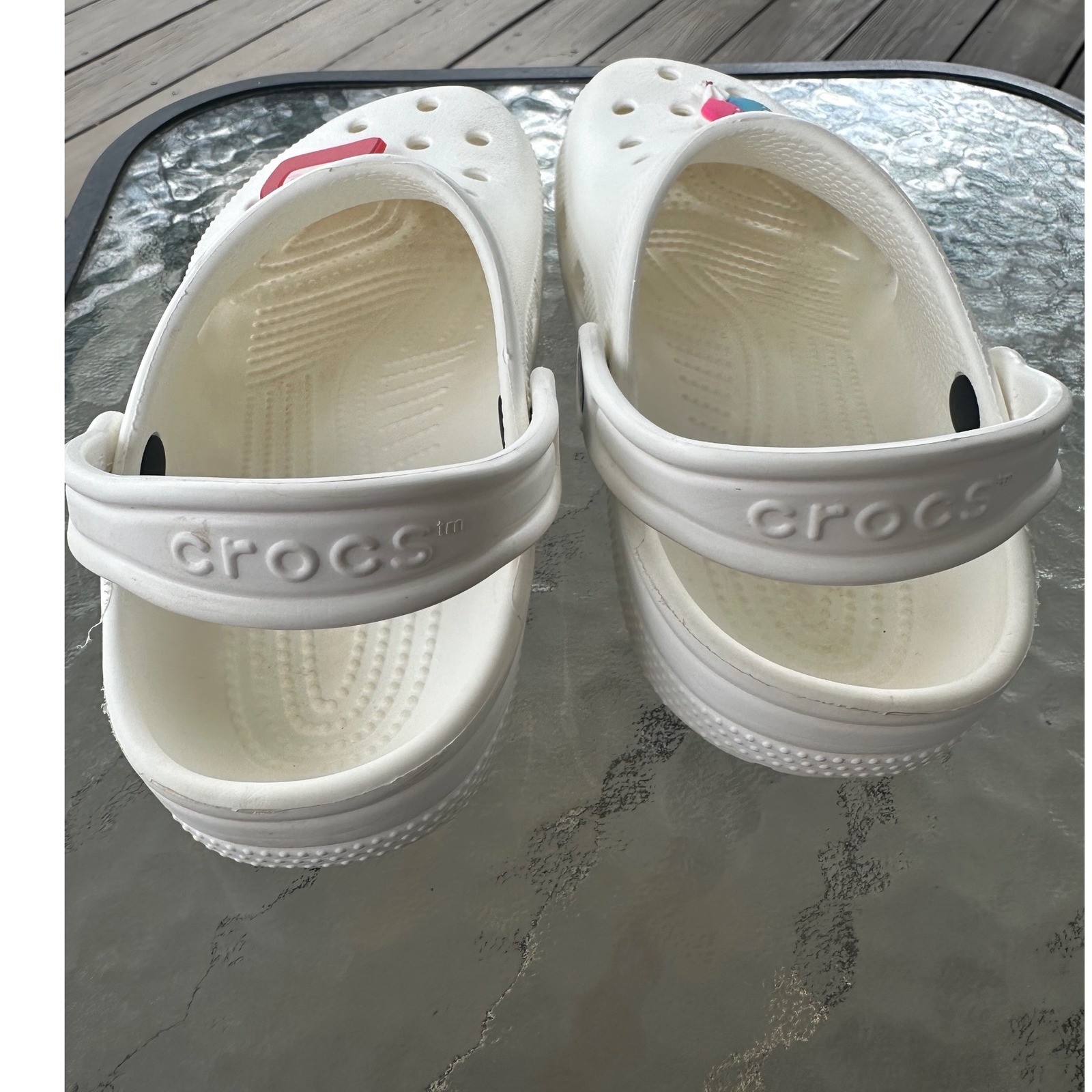 как выглядит Crocs Classic Clog White Slip On Shoes Mens 2 Womens 4 with Jibbitz Charms фото