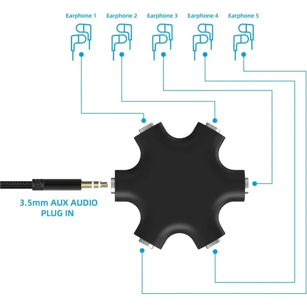 3.5mm 5-Jack Female Audio Splitter Adapter Multi Headphone Stereo Cable 20cm