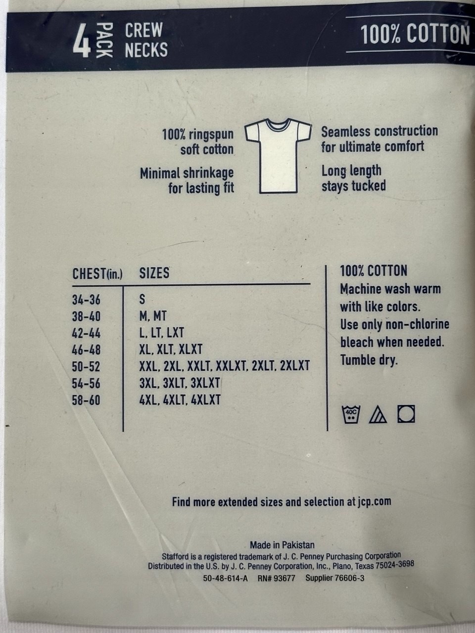 как выглядит Stafford 4-Pack Mens XXL White Crewneck Undershirts Super Soft 100 Cotton NEW фото