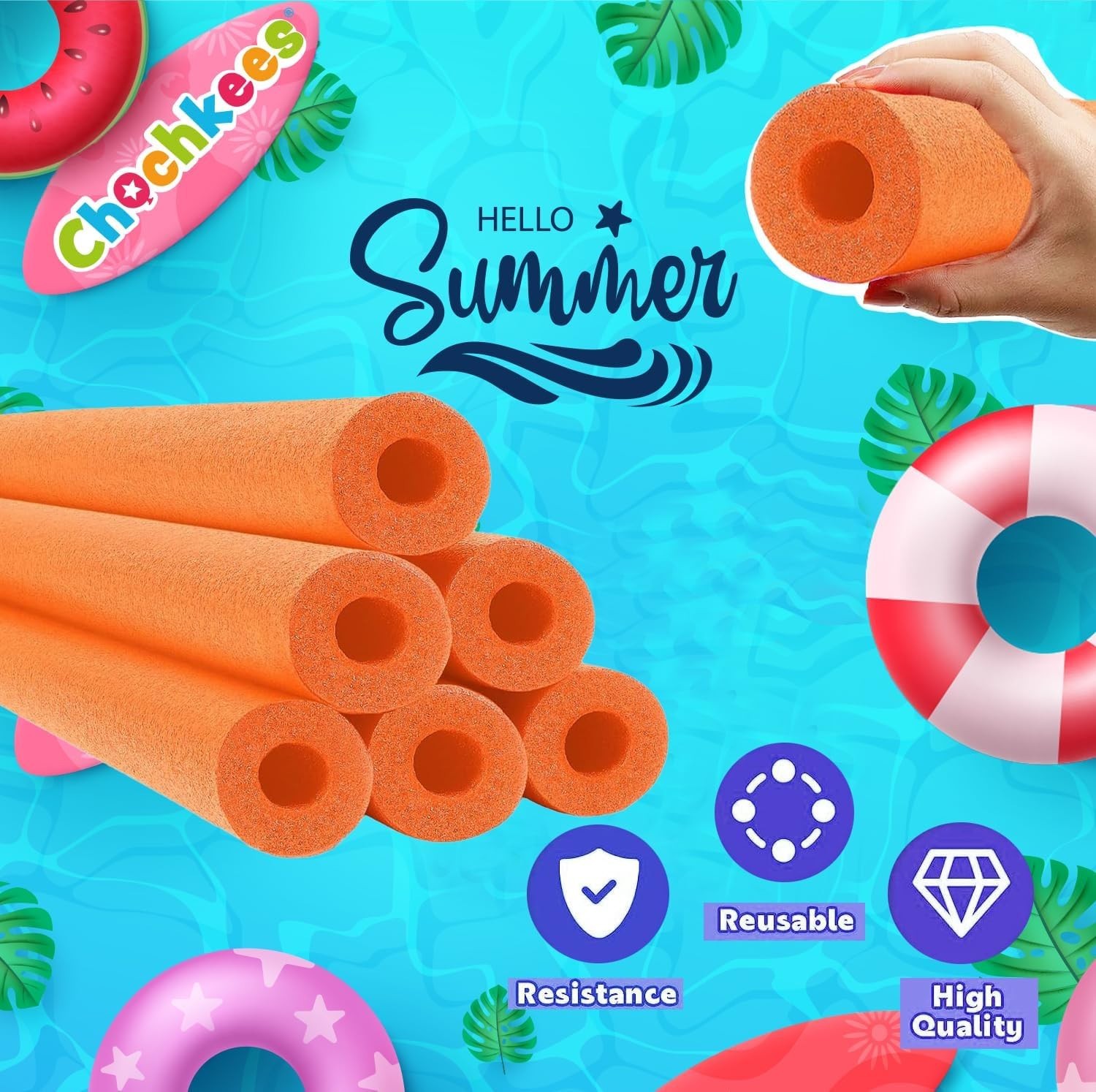 Orange Pool Noodles 52 Inch Foam Float Tubes for Swimming and Pool Fun 3-Pack