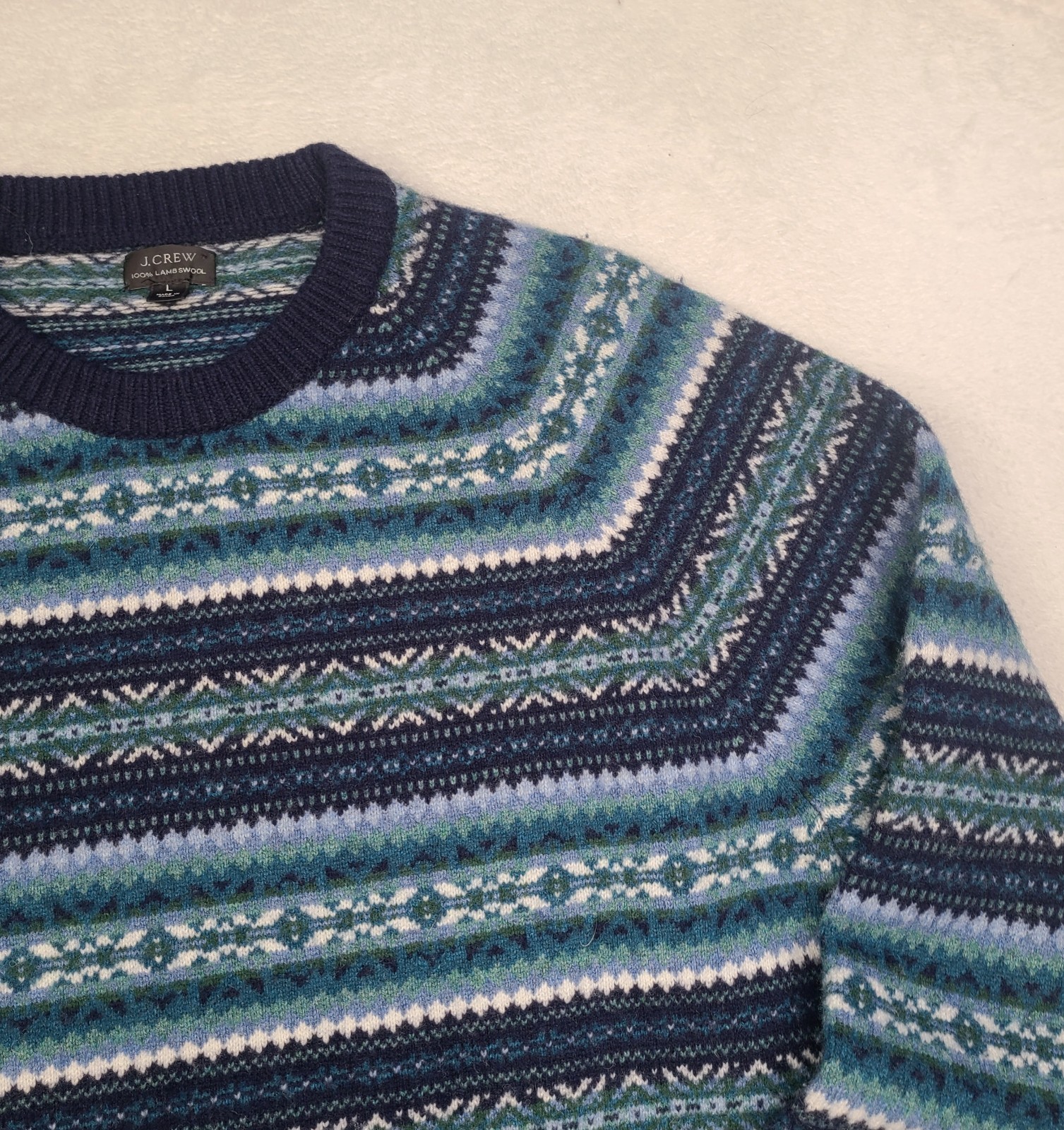 как выглядит J Crew Men s Lambs Wool Sweater Large Fair Isle Aztec Nordic Colorful фото