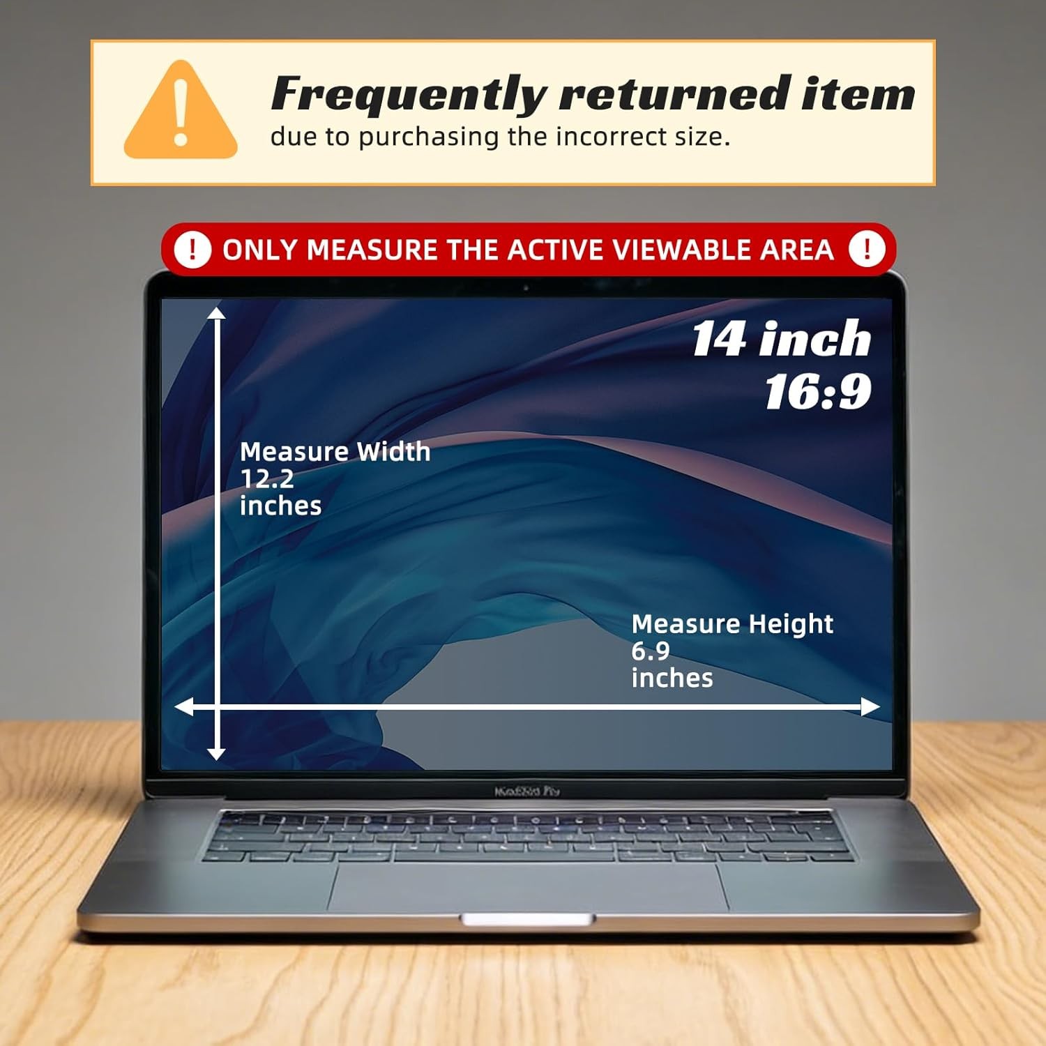 14 Inch Laptop Privacy Screen Protector, Removable 16:9 Aspect Anti Peeping Filt