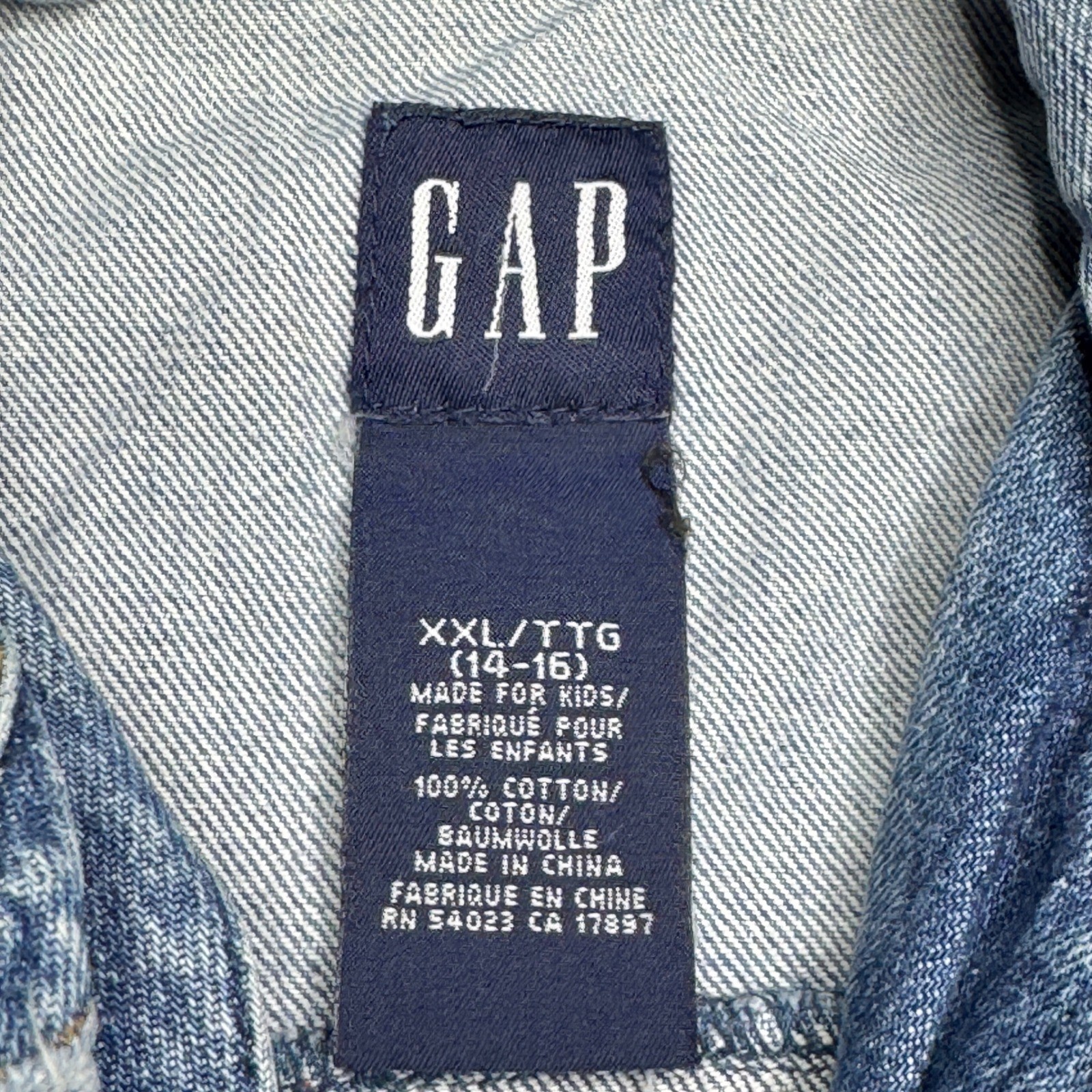 GAP Kids Denim Jacket 100 Cotton XXL 14-16 Light Wash Classic Jean Jacket