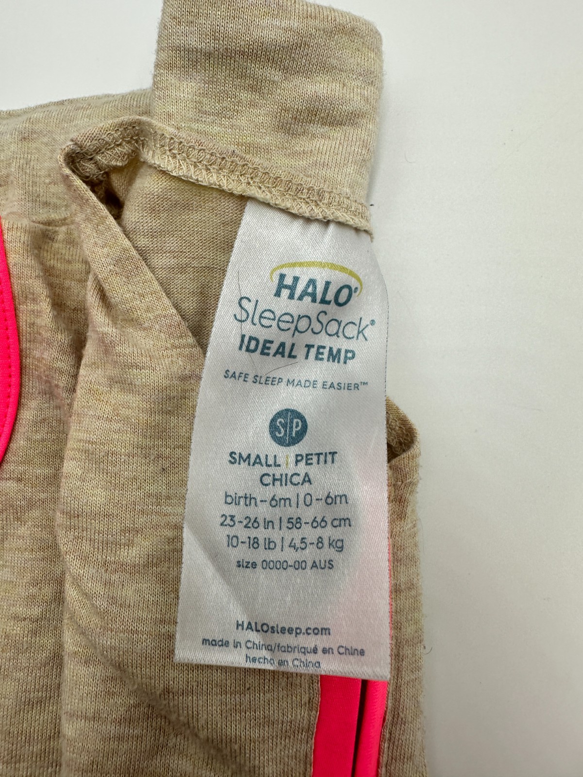 NEW HALO Sleepsack Ideal Temp, Baby Wearable Blanket, TOG 1.0, Oatmeal/Pink, S