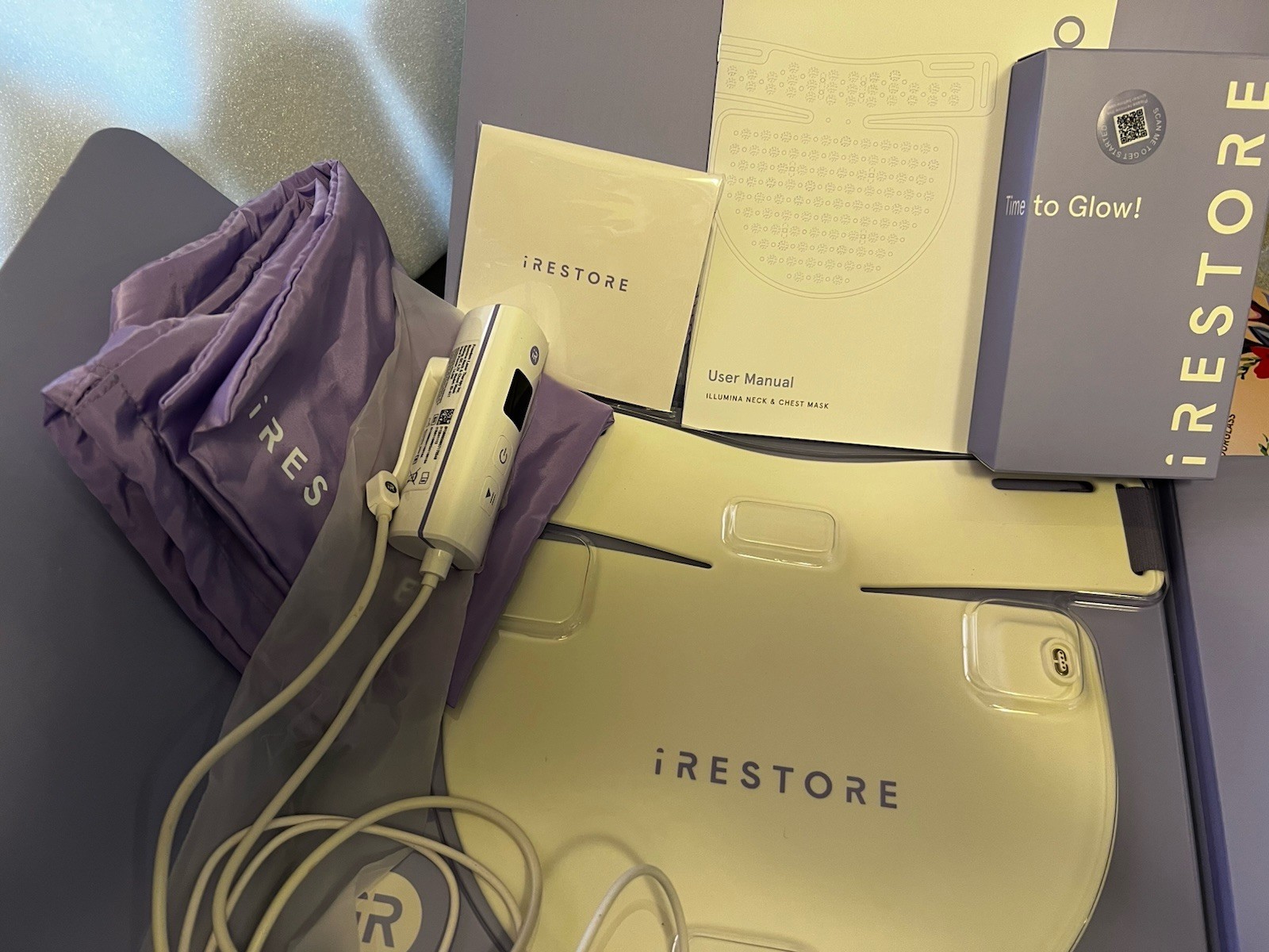 как выглядит IRESTORE Illumina Neck Chest LED Mask Skincare System 4.2VDC 14W White/Purple фото